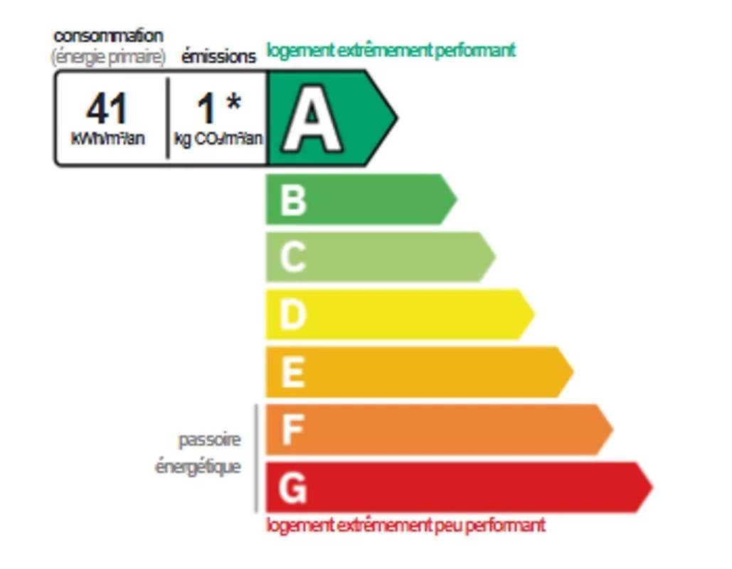 Pompe à chaleur électrique avec plancher chauffant au rez-de-chaussée. Facture énergétique estimée entre 570 et 810 € par an. Une performance rare, des économies réelles et durables.