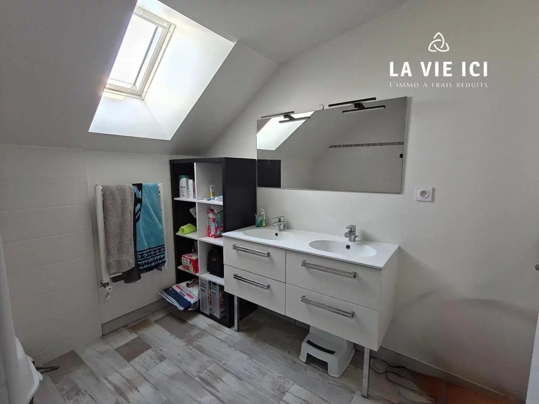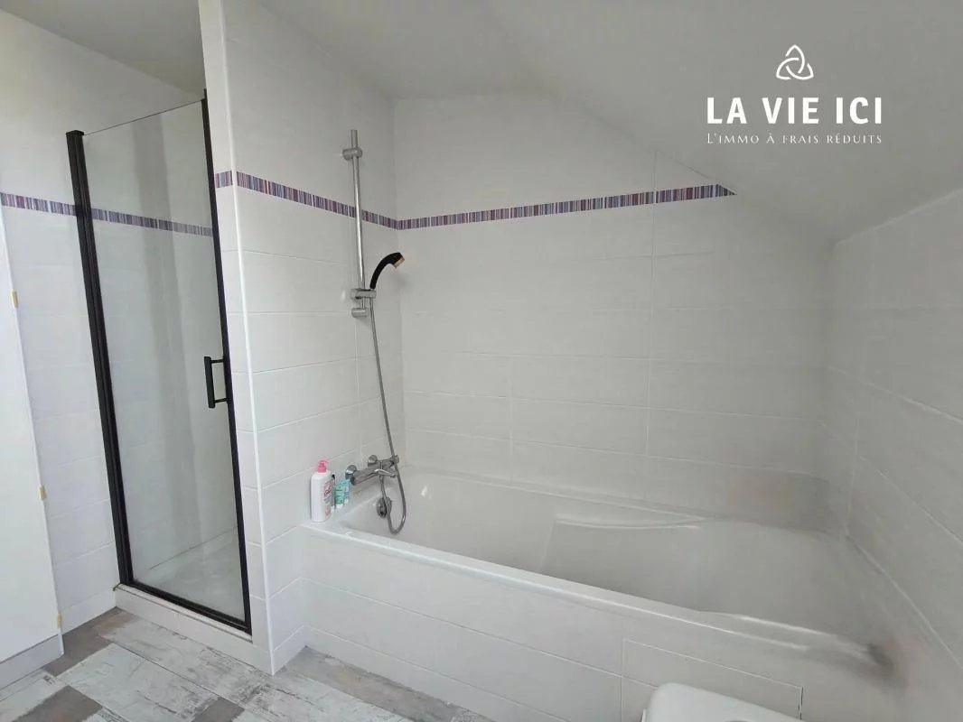 À l'étage : 3 chambres, une salle de bain avec douche ET baignoire et un WC séparé.