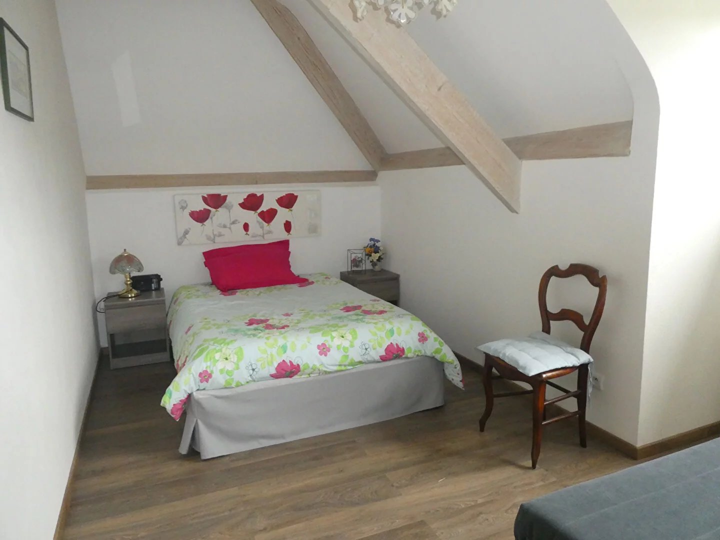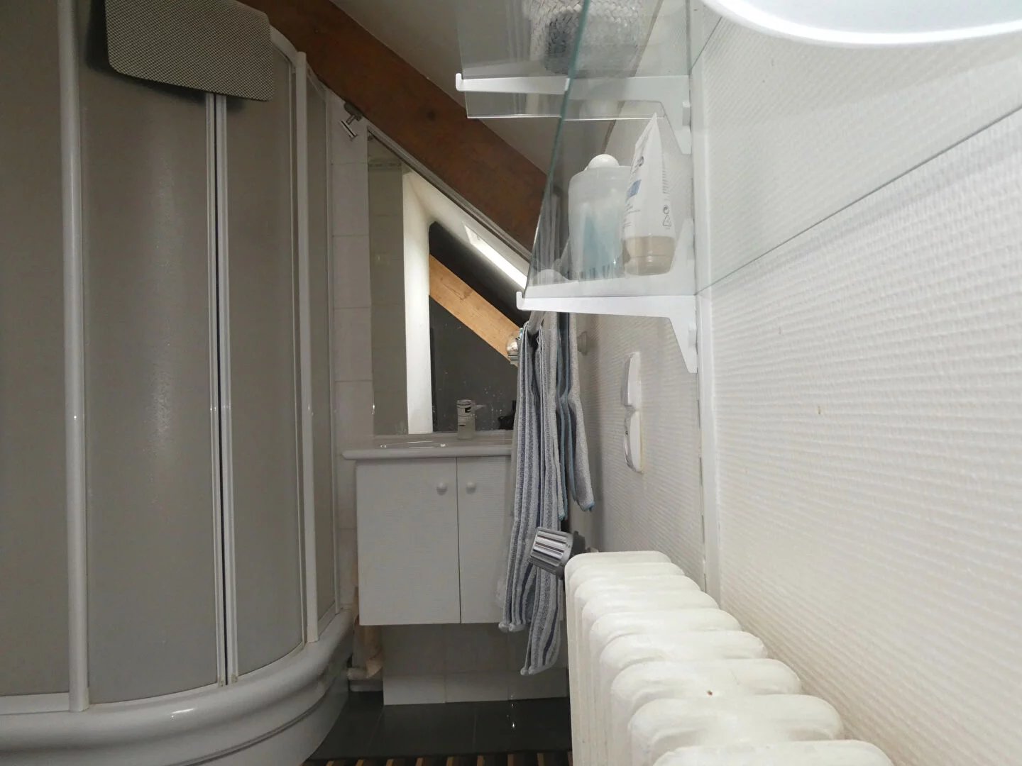 RDC : entrée, vestiaire, wc, beau séjour salon avec cheminée foyer ouvert avec grandes baies, cuisine aménagée et équipée, 1 chambre, salle de douches à l'italienne.