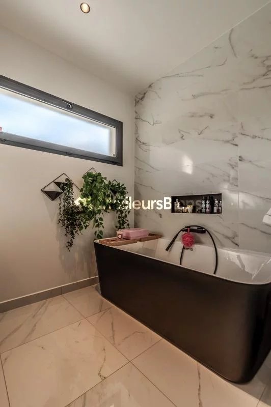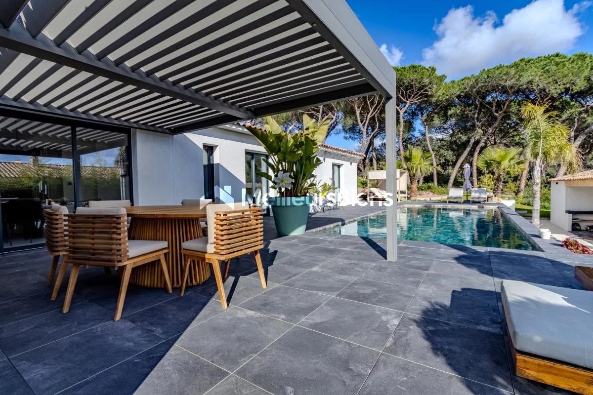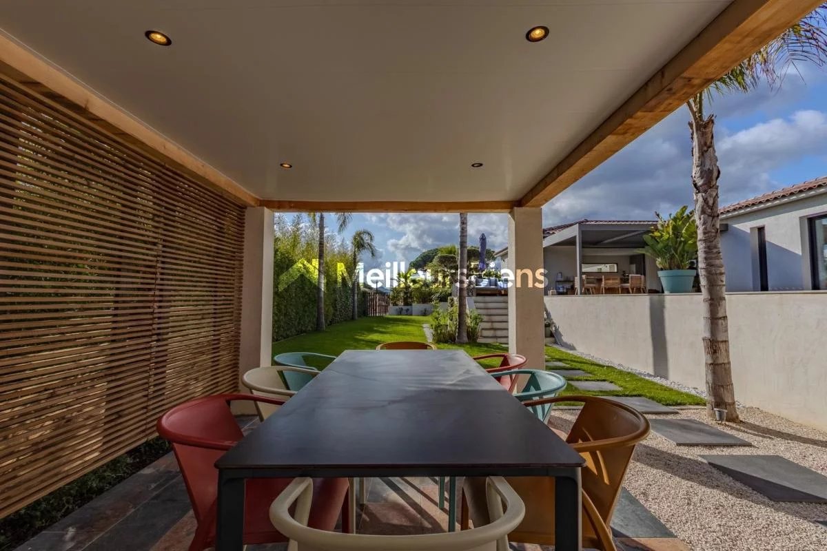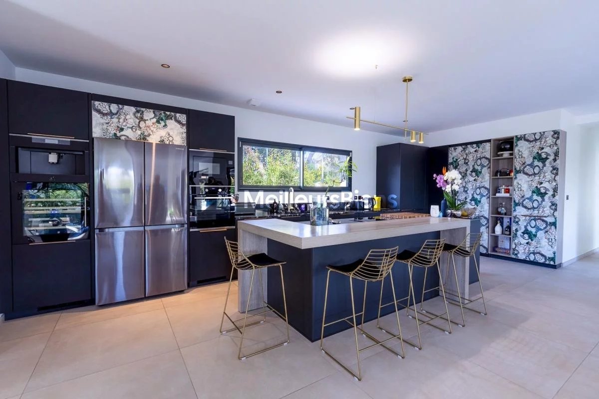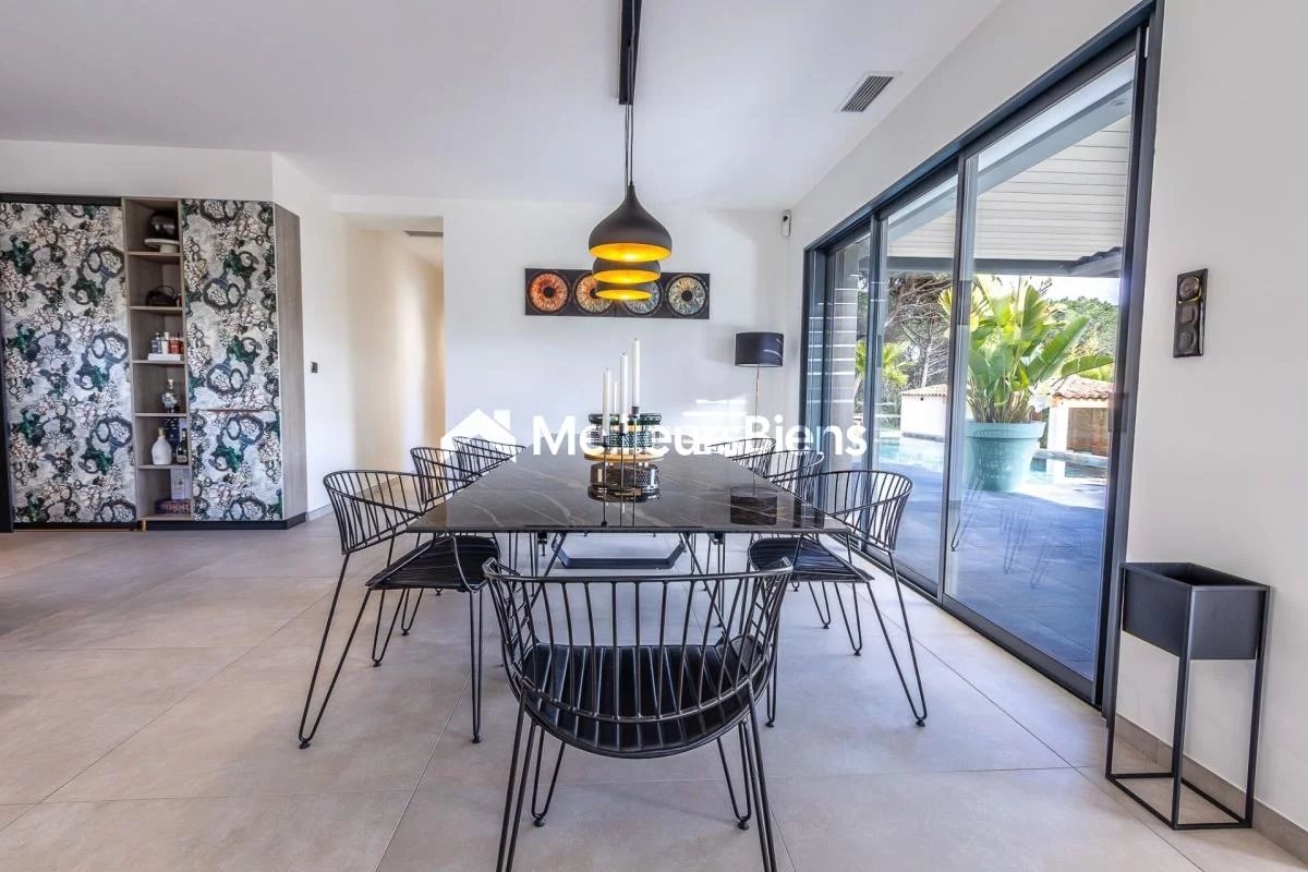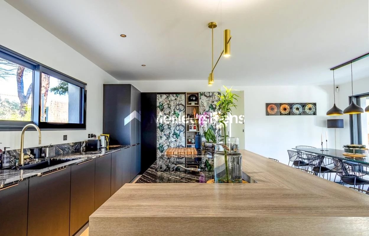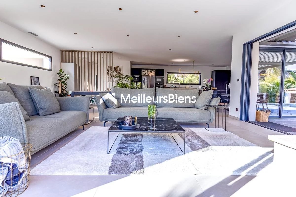 Édifiée sur un terrain plat et paysager de 2 500 m², la maison propose une superbe pièce de vie d'environ 100 m², très lumineuse, avec cuisine moderne entièrement équipée et grandes baies vitrées ouvrant sur la terrasse et la piscine.