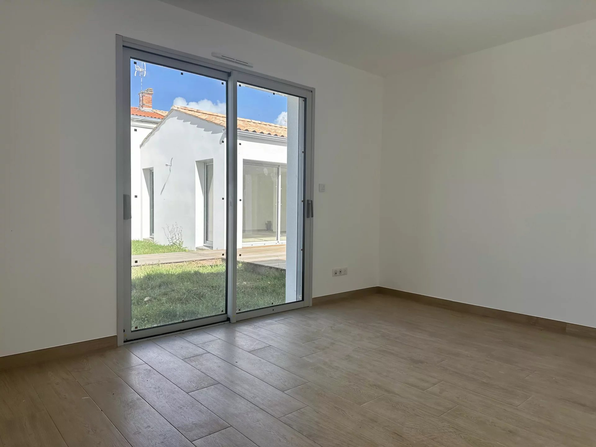 L'entrée, avec sa vue en transparence sur la terrasse et le jardin, vous emmène vers la pièce de vie composée d'une cuisine et d'un séjour, pour une superficie totale de plus de 65 m².