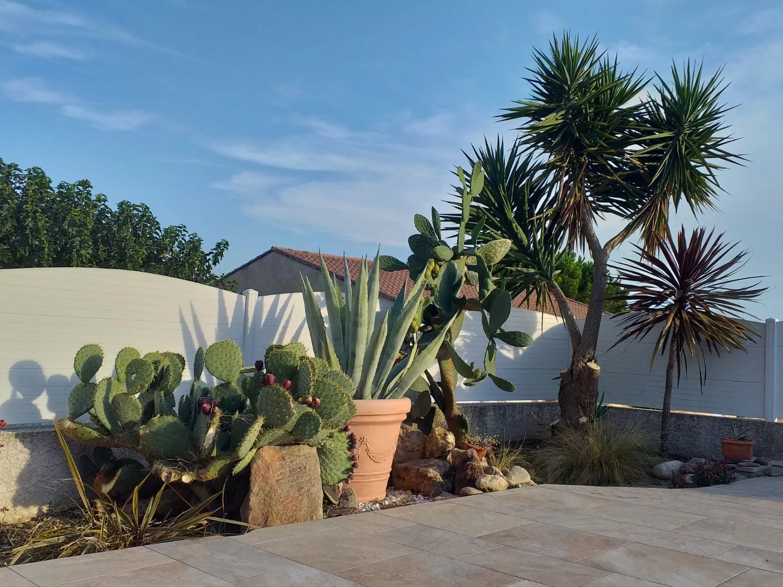 À l’extérieur, vous profiterez d’un véritable espace de détente avec une piscine coque au sel 4 x 8 m, une agréable terrasse exposée plein sud et un jardin arboré avec arbres fruitiers.