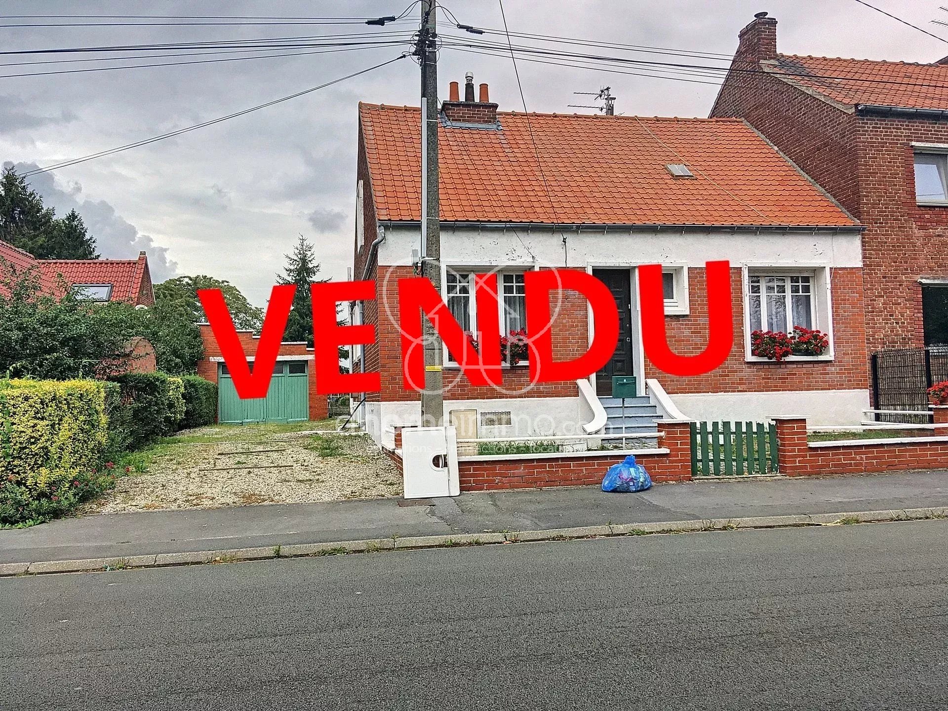 Ce plain pied en briques de 1960, comprend au rez de chaussée : un séjour, une cuisine, 3 chambres, une salle de bain et une véranda donnant sur le jardin.