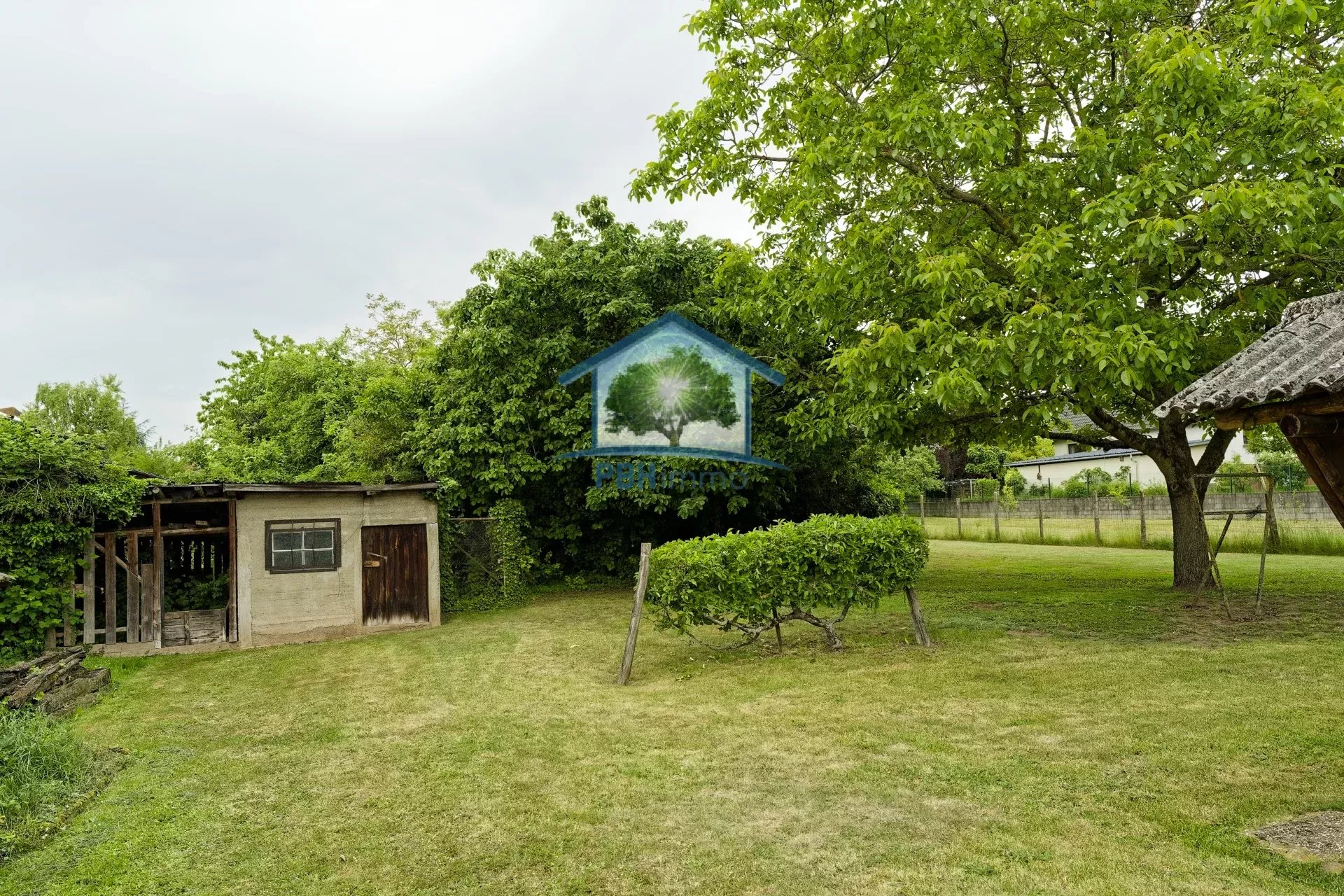 Située dans un environnement verdoyant, cette propriété comprend une maison de 91,7 m² habitables (environ 110 m² au sol) construite en 1948 , ainsi que des dépendances (garages et atelier) de 50 m² environ, le tout sur un terrain arboré de 24,12 ares intégralement en zone constructible.
