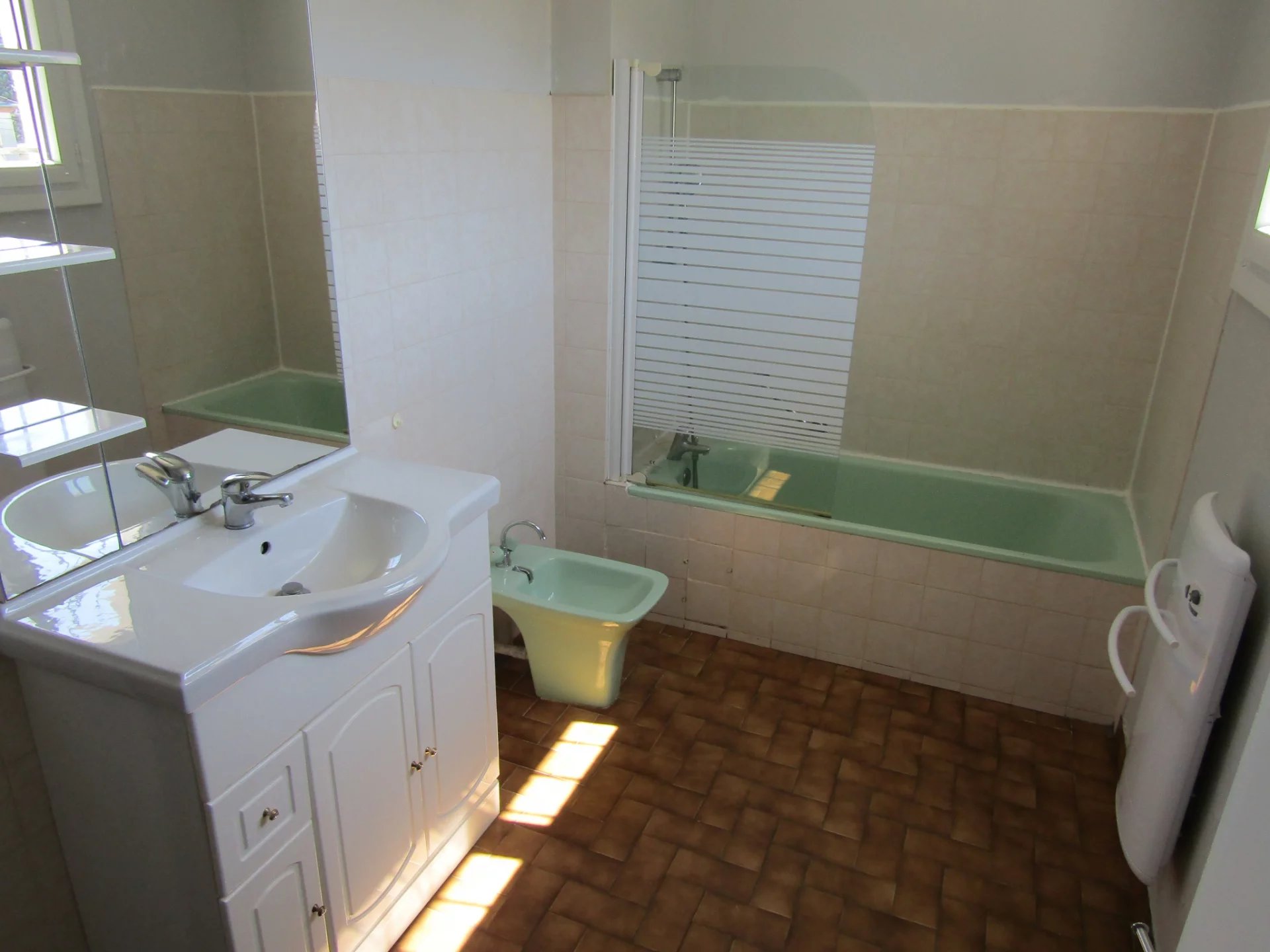 A 800 m du Rond Point et 500 m su Lycée est dans un quartier calme et résidentiel. Villa sur un lot d'angle clos et arboré de 569 m2, se compose au rez-de-chaussée d'un hall d'entrée de 6 m2, une salle de séjour de 27 m2, Cuisine meublée de 8 m2, wc et garage, à l'étage trois chambres dont deux avec placard de 9 à 11 m2, une salle de bains avec placard et un wc indépendant. Toutes les menuiseries sont en double vitrage >P.V;c; avec volets roulant électrique. Climatisation réversible