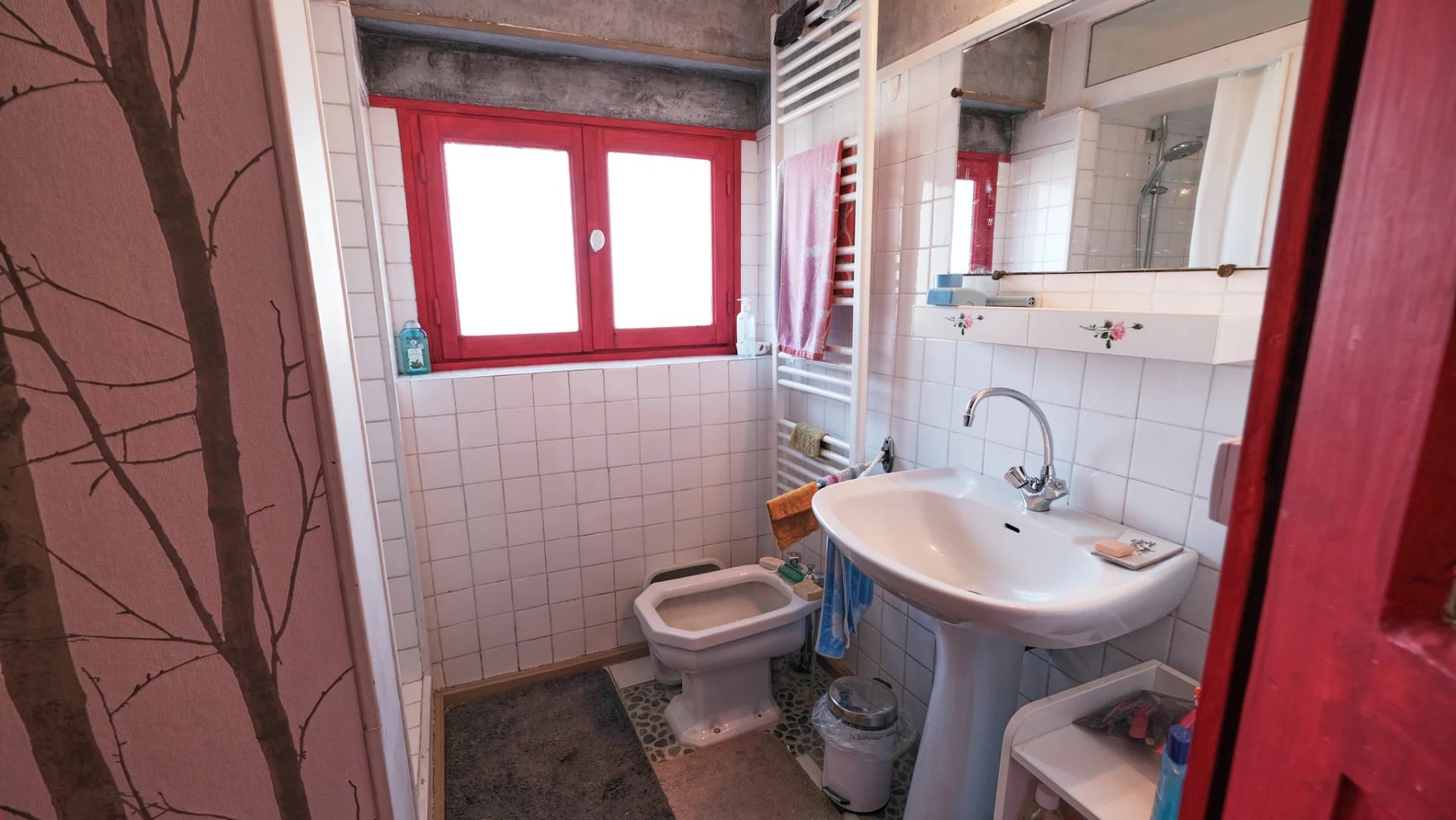 Couloir, 4 chambres (8, 9, 11 et 12 m²), wc, salle d’eau avec douche et lavabo