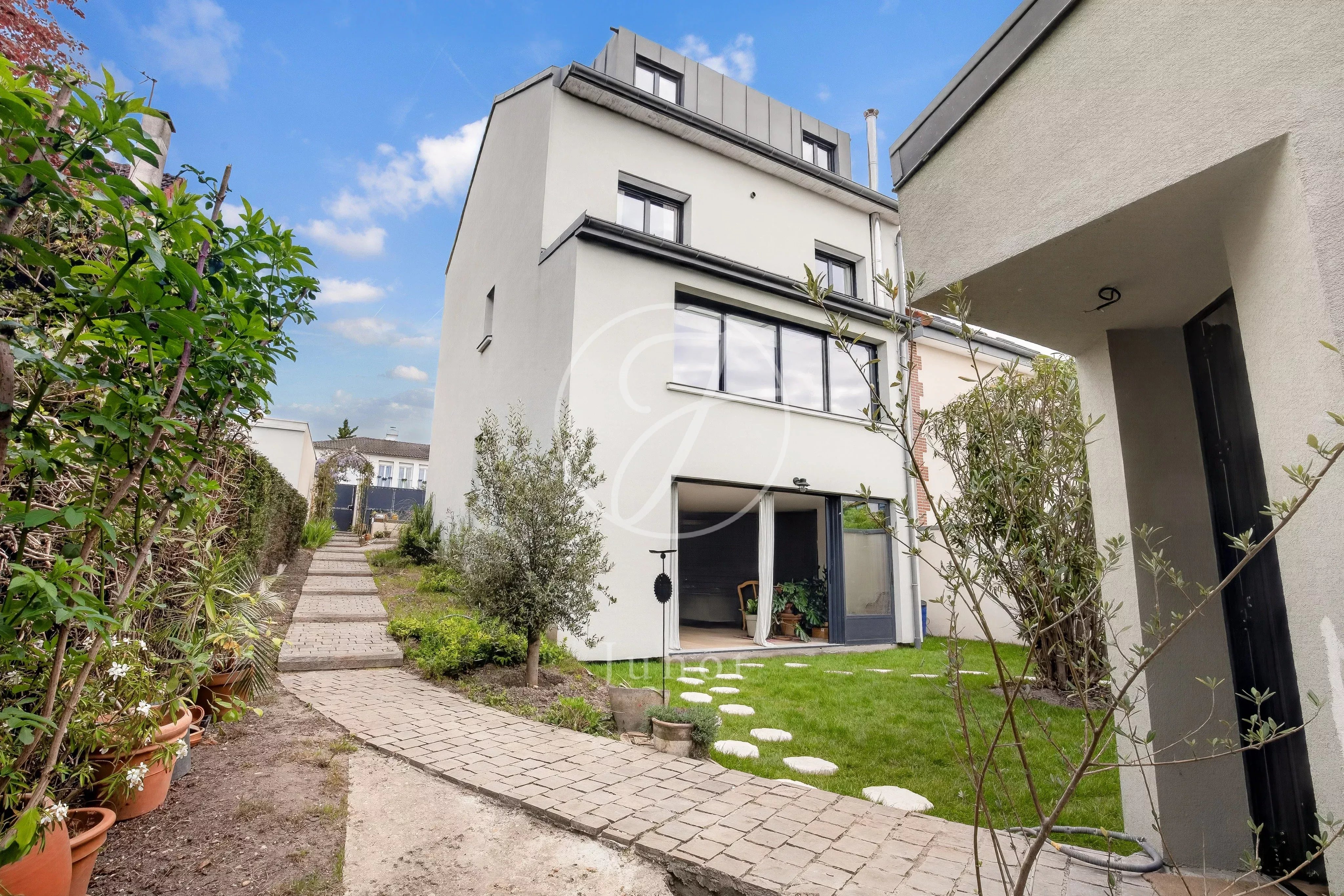 Sur une parcelle de 564 m², cette maison familiale de 207 m² Carrez (231 m² habitables) a été entièrement repensée et agrandie avec une écriture contemporaine, privilégiant des volumes confortables et une circulation fluide.