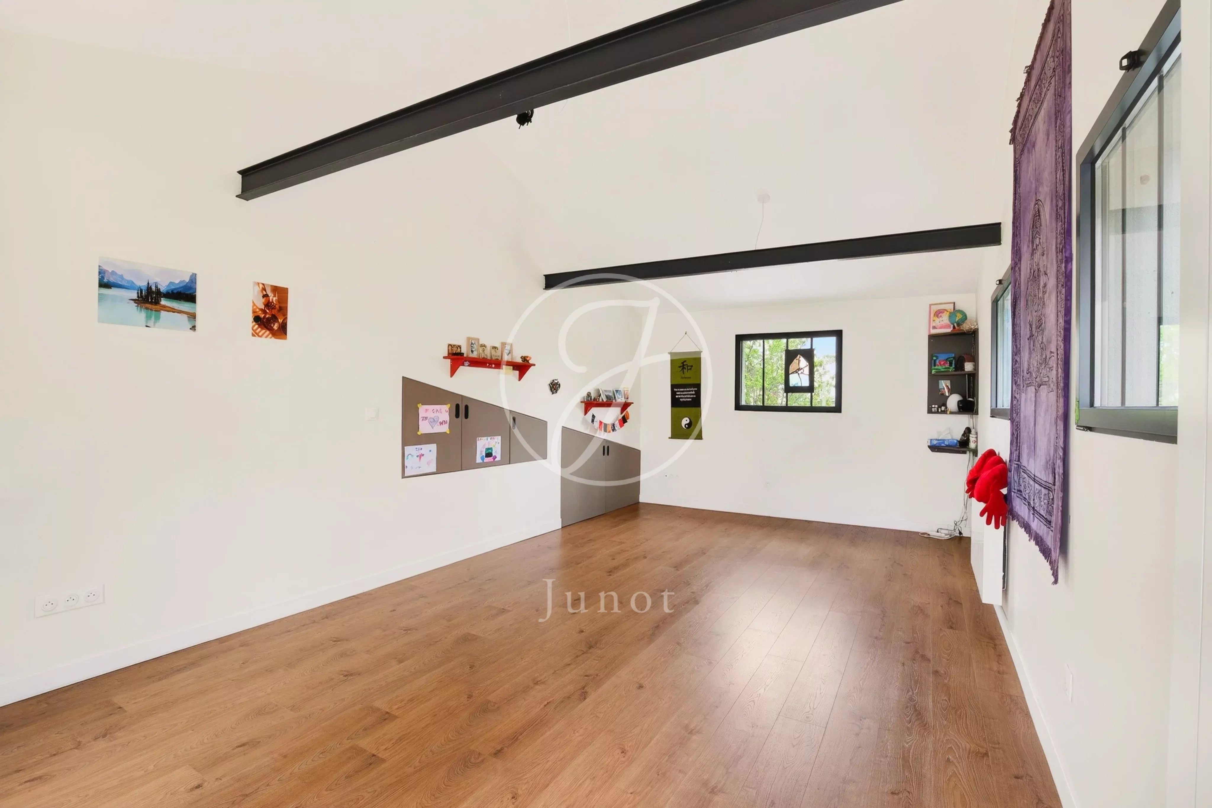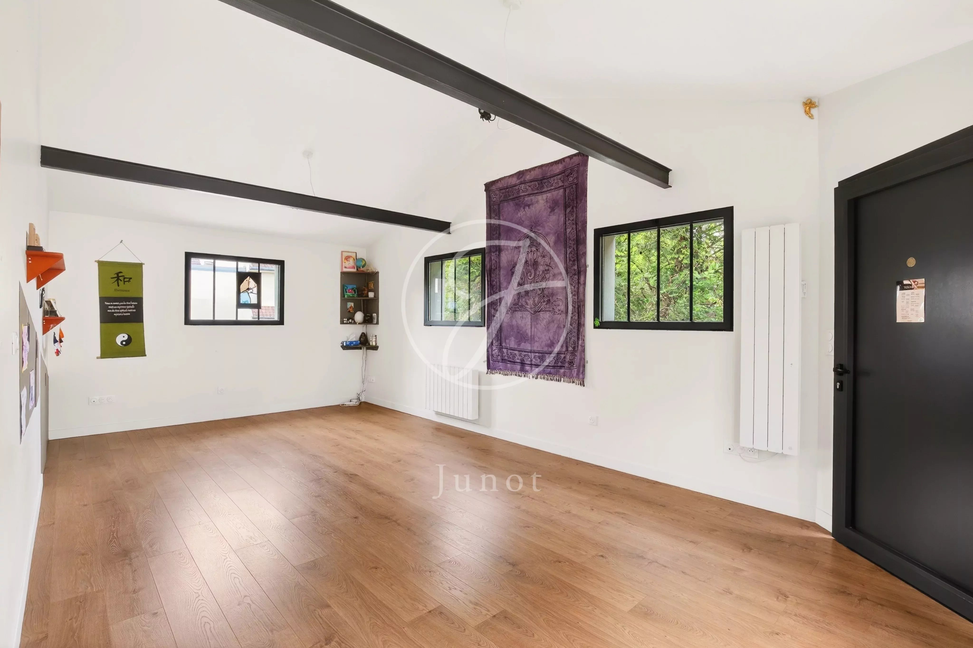 Une dépendance d’environ 75 m² complète l’ensemble. Actuellement exploitée en espace de yoga de 30 m² (avec possibilité d’activité professionnelle), elle comprend également un cabinet de toilette, plusieurs espaces de rangement et une pièce de 23 m² ouverte sur le jardin.