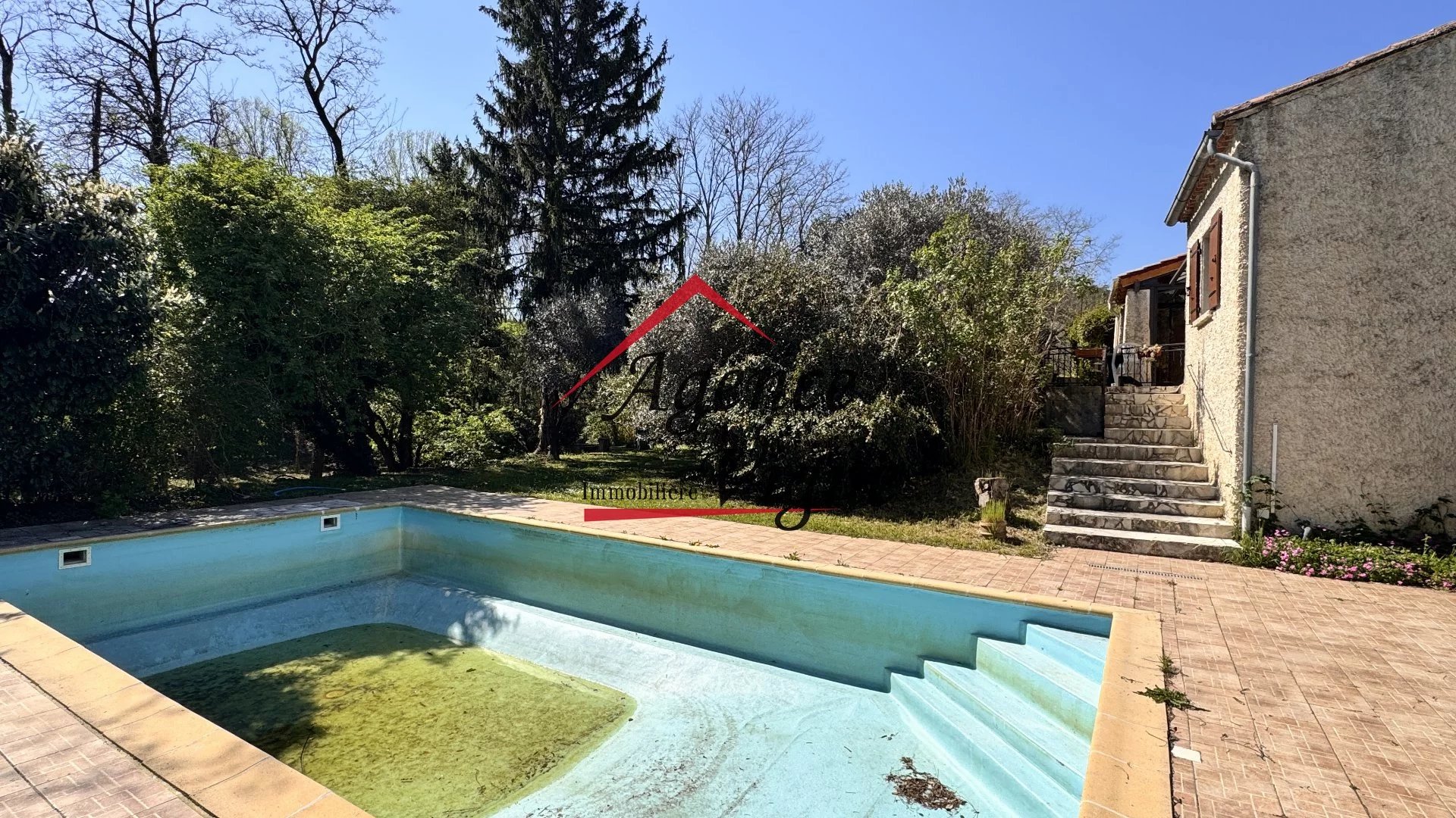 215 000 €Profitant d'une agréable situation, villa indépendante Dans un quartier résidentiel au calme, entourée de 1450 m² de beau terrain arboré et clos, piscine de 10 x 5 m avec plage dallée, offrant 110 m² environ habitables : salon - salle à manger de 36 m², cuisine, 4 chambres... + au rez-de-jardin 63 m² env. habitables comprenant une cuisine d'été, un salon et une chambre - Grand sous-sol atelier - Des travaux de remise au goût du jour sont à prévoir et le chauffage est à améliorer - Double garage indépendant - Bel écrin de verdure mais à 2 pas de tous commerces - Bonne exposition