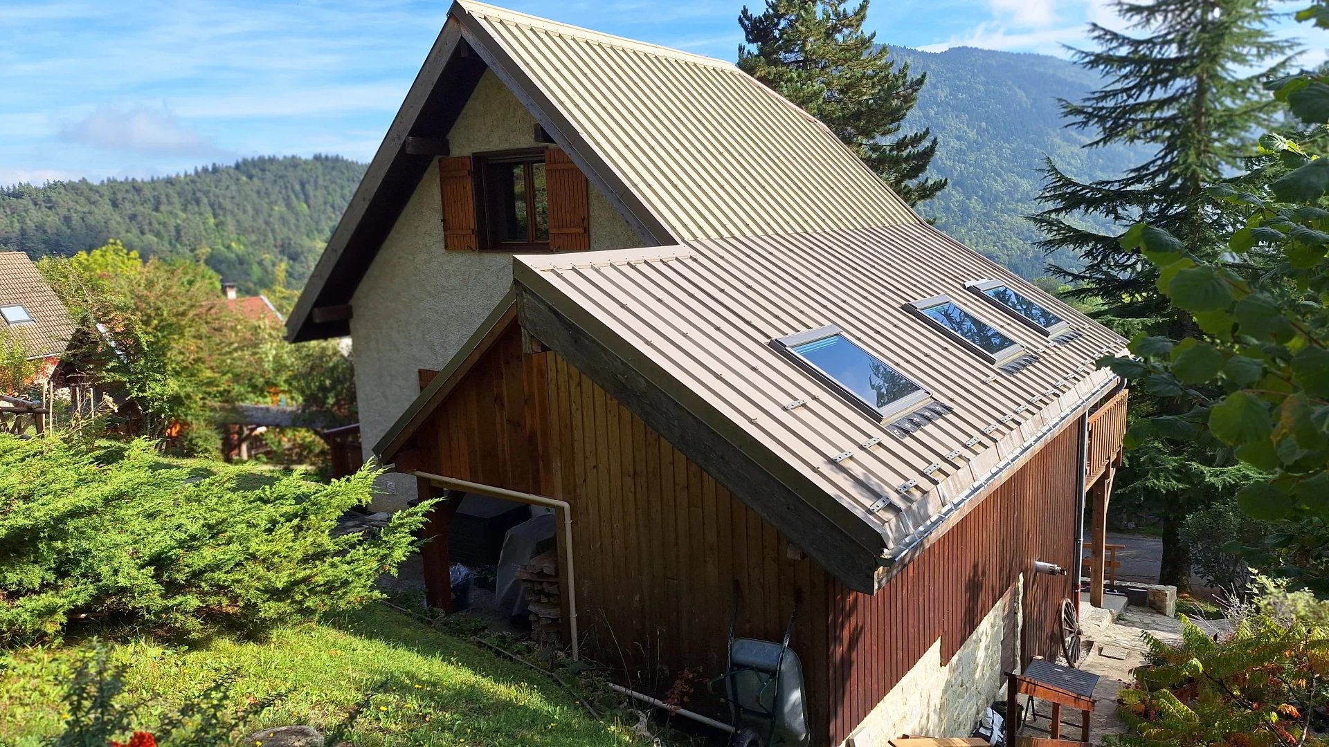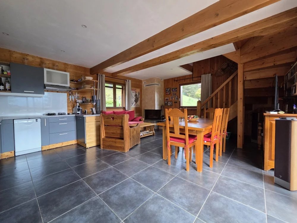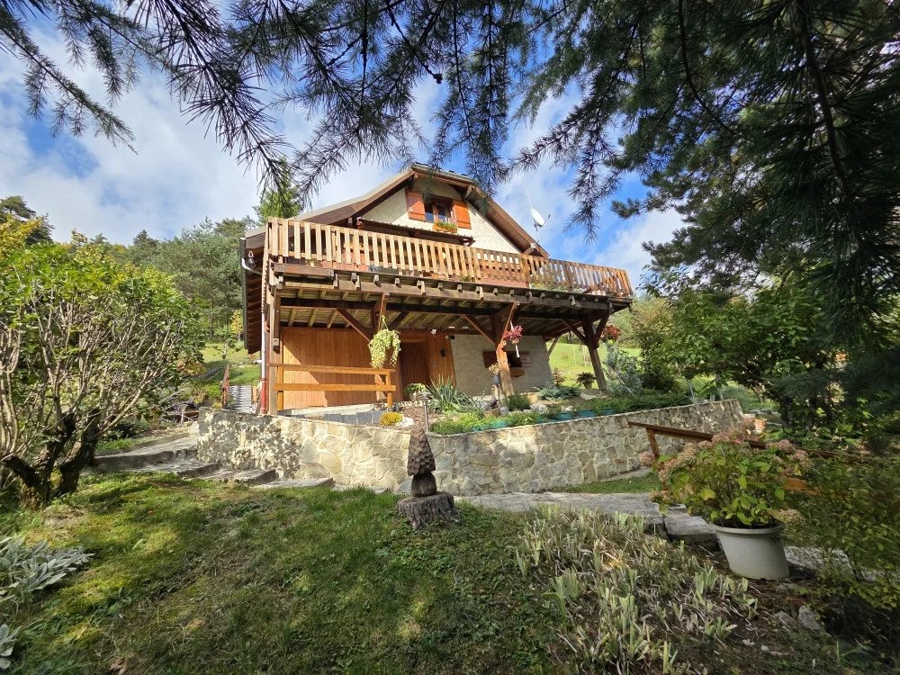 Charmant chalet entièrement meublé de type T4 pour 73 m² (utile 85m²) situé à St Andéol avec très belle vue dégagée sur la chaîne du Vercors et le Mont Aiguille.
