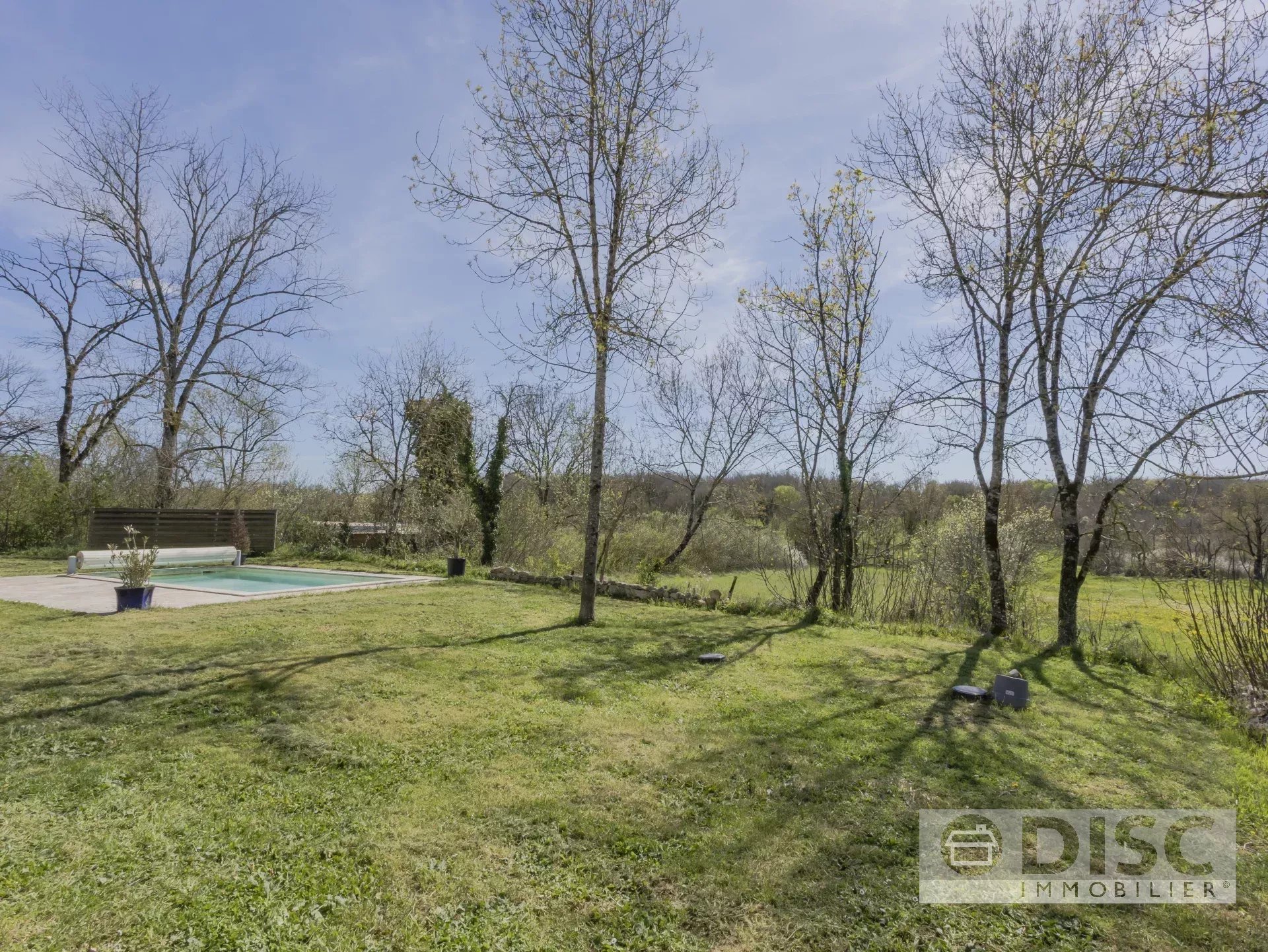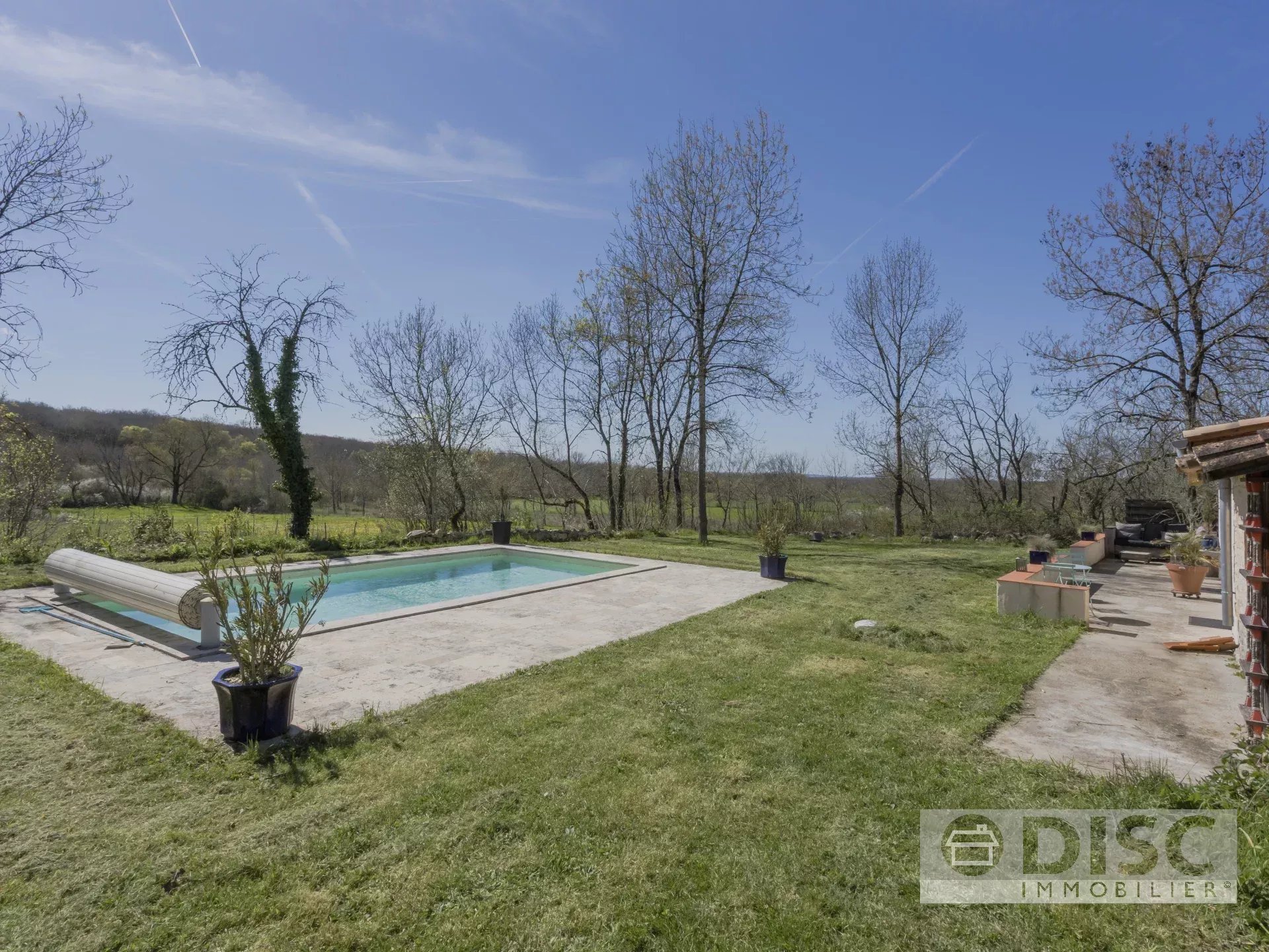À l’extérieur, vous trouverez un joli jardin d’environ 1 530 m², avec une piscine creusée de 8 m × 4 m, d’une profondeur de 1,40 m. Elle fonctionne avec un filtre à sable et bénéficie d’un emplacement complètement intime et privé.