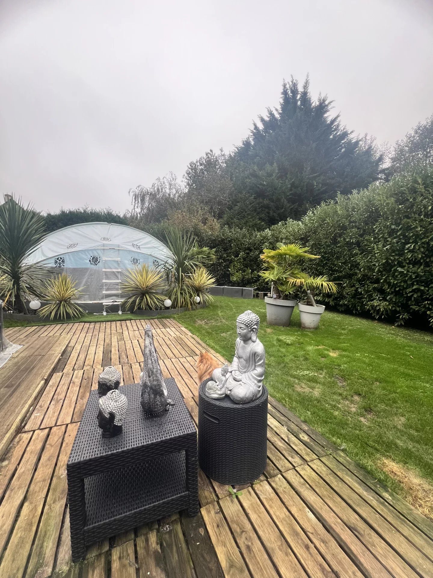 Un jardin entoure la maison, sans vis à vis, bien exposé avec des arbres fruitiers.