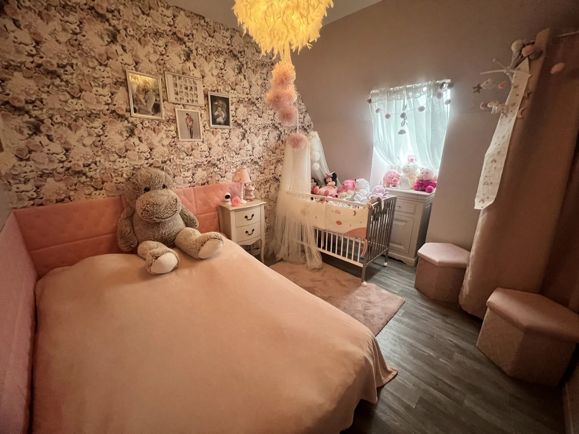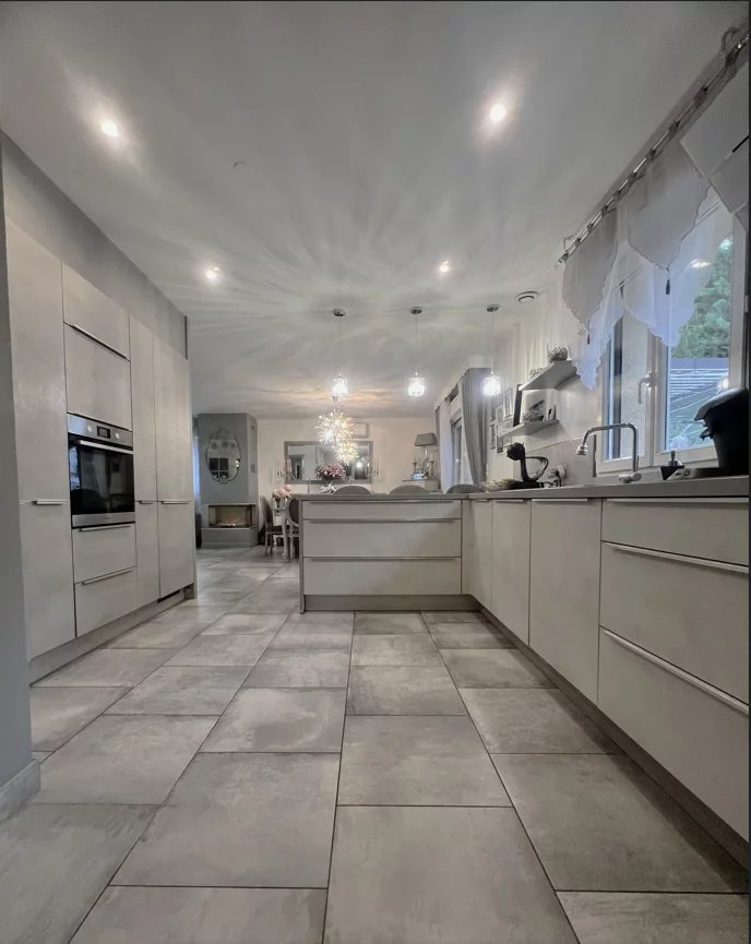 Une belle pièce à vivre cosy et chaleureuse vous accueille pour des moments de convivialité, grâce à la cheminée avec insert et la belle cuisine ouverte. Le rez-de-chaussée propose également une entrée avec placards, des toilettes séparées, une buanderie et un box, pouvant être transformé en chambre si nécessaire.