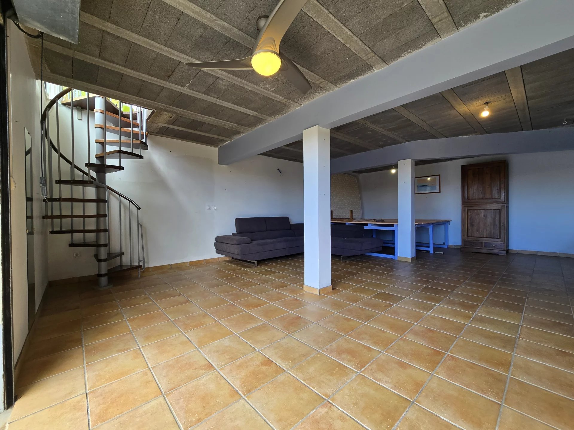 Mezzanine ouverte, idéale pour un bureau, atelier créatif, espace jeux ou loft privé