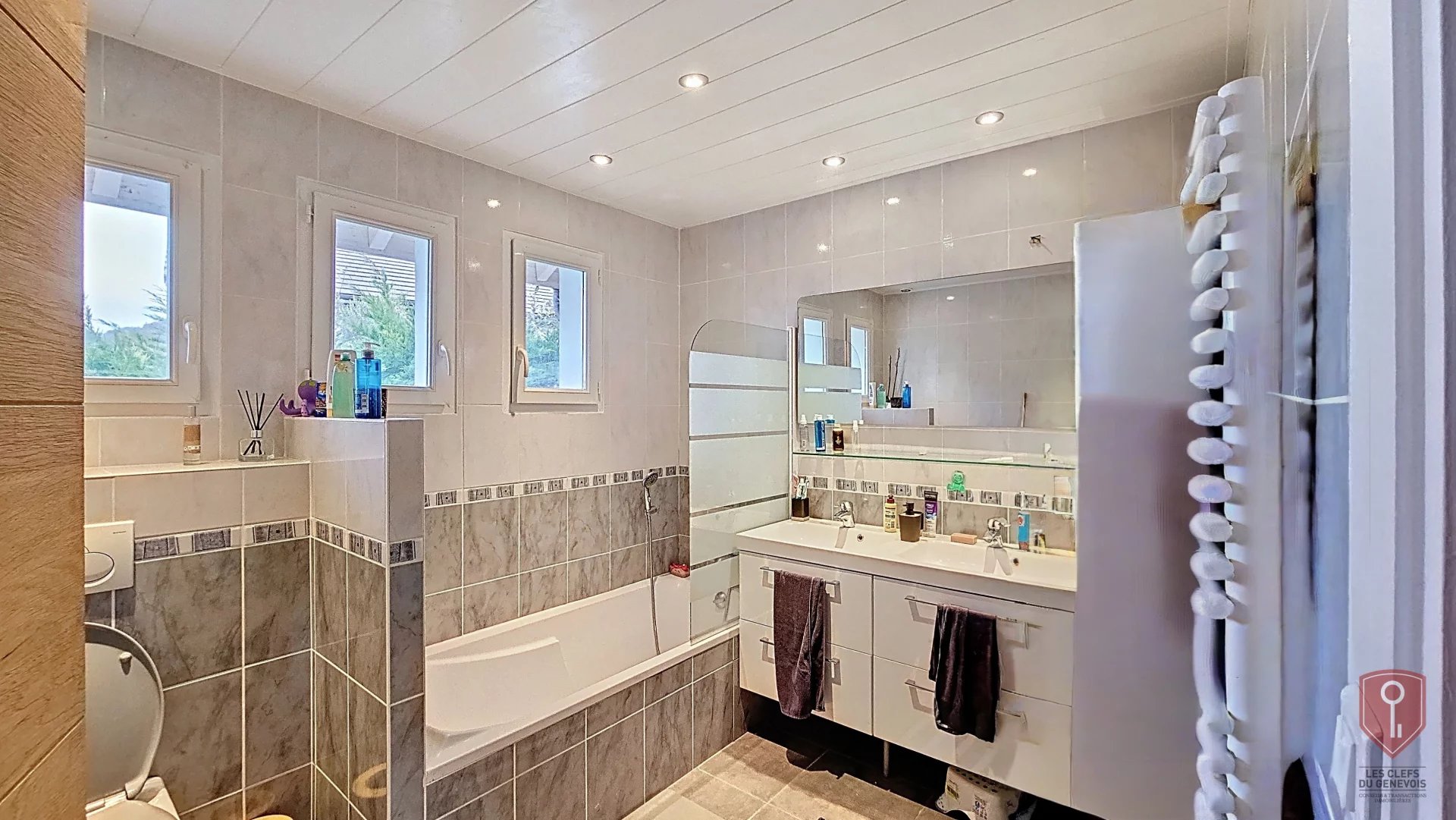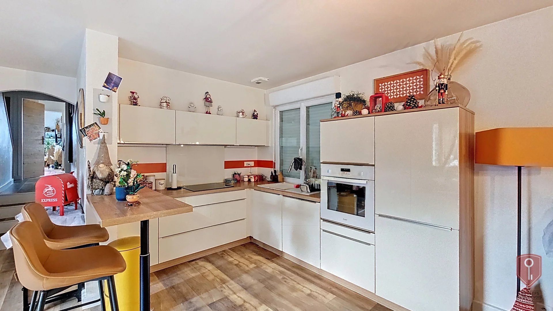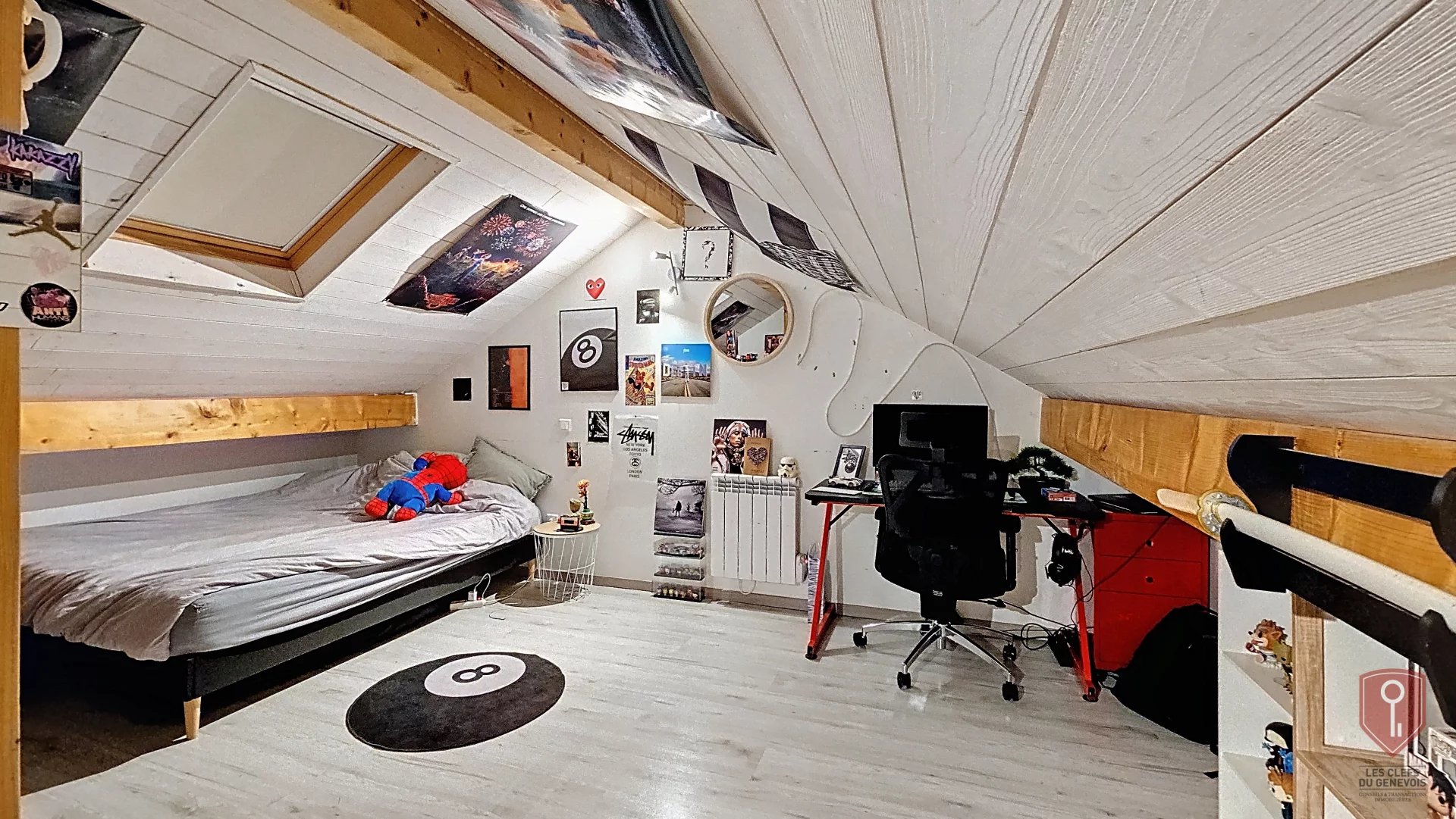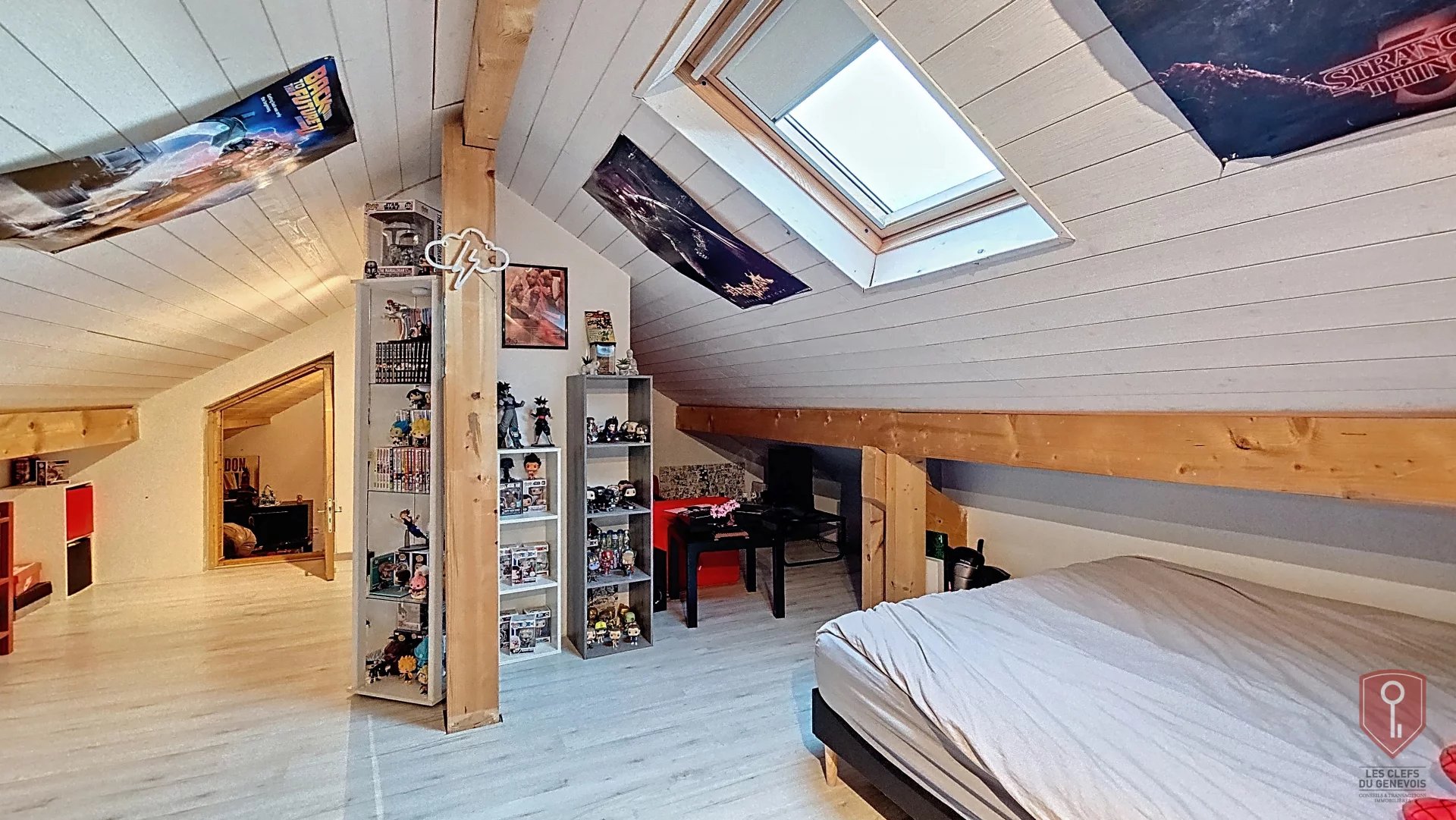 Elle propose une belle pièce de vie avec cheminée, un cellier, ainsi qu’un espace nuit comprenant une suite parentale avec dressing et salle de douche, deux chambres avec placards et une salle de bains avec WC en demi-niveau. À l’étage, une salle de jeux et deux chambres sous combles complètent l’ensemble.