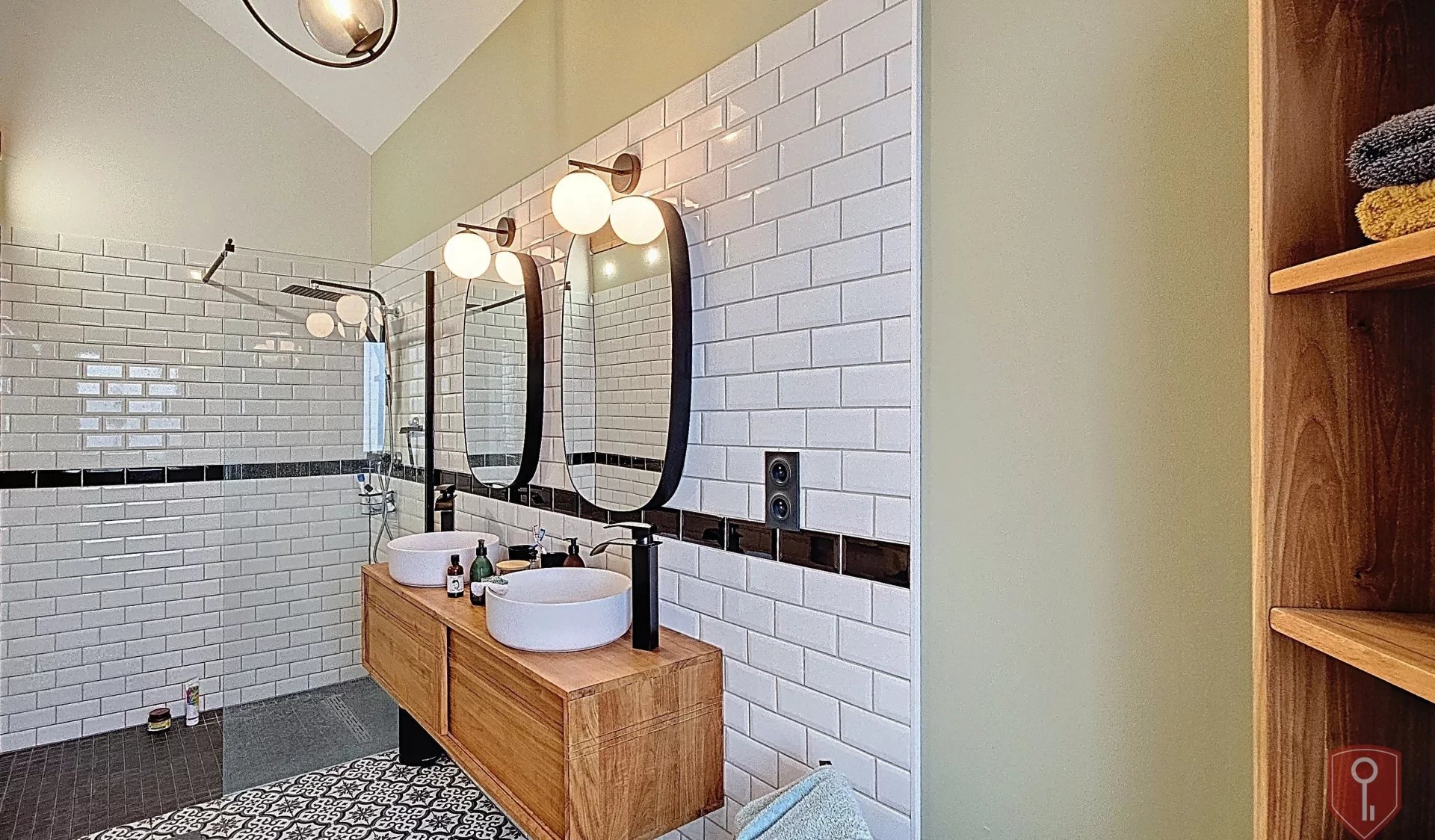 Le sous-sol accueille une salle de douche avec WC, ainsi qu’un cabinet de profession libérale avec salle d’attente, idéal pour une activité indépendante.