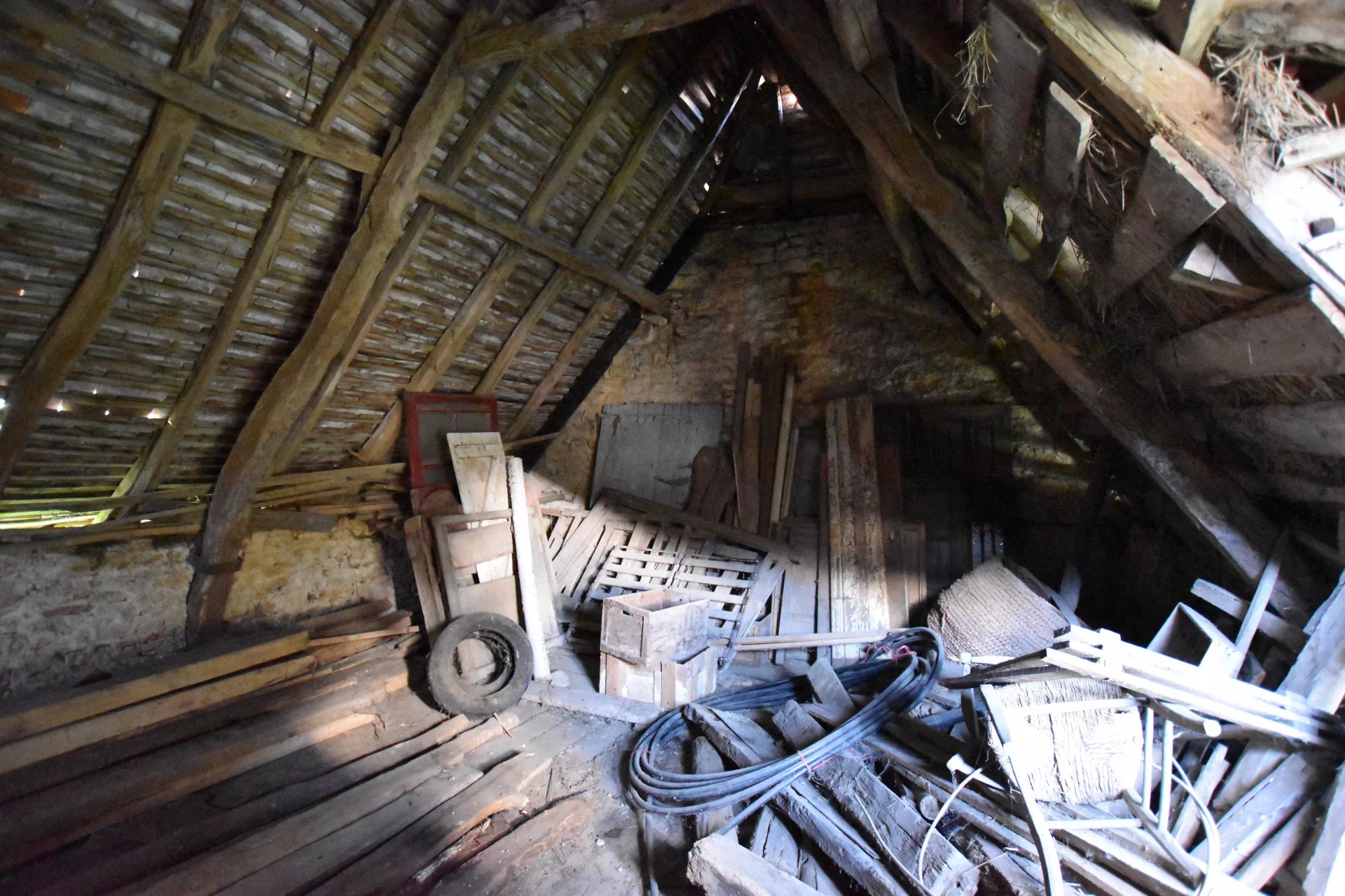 Grange en pierre de 70 m² au sol, un étage possible.