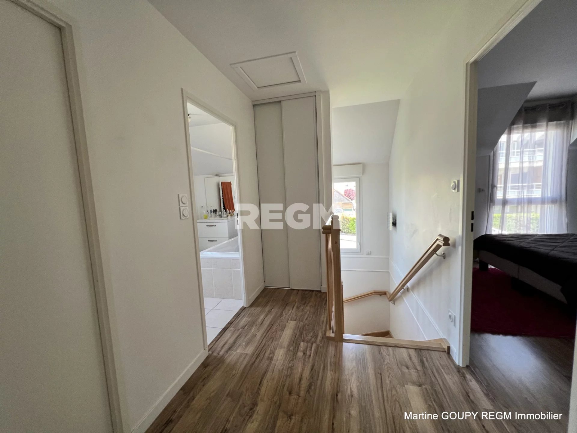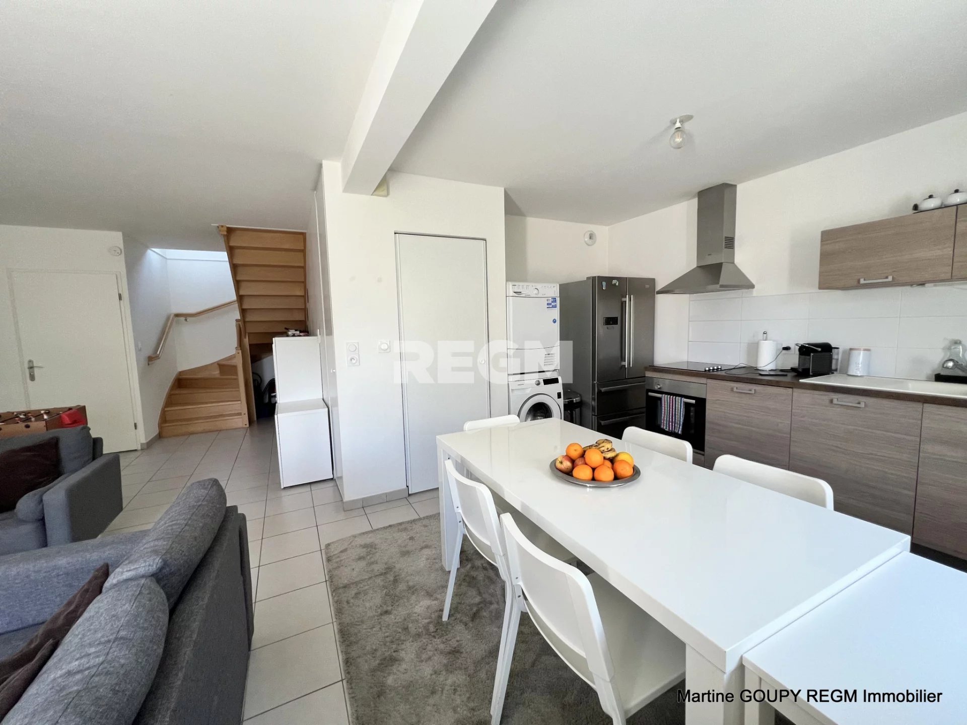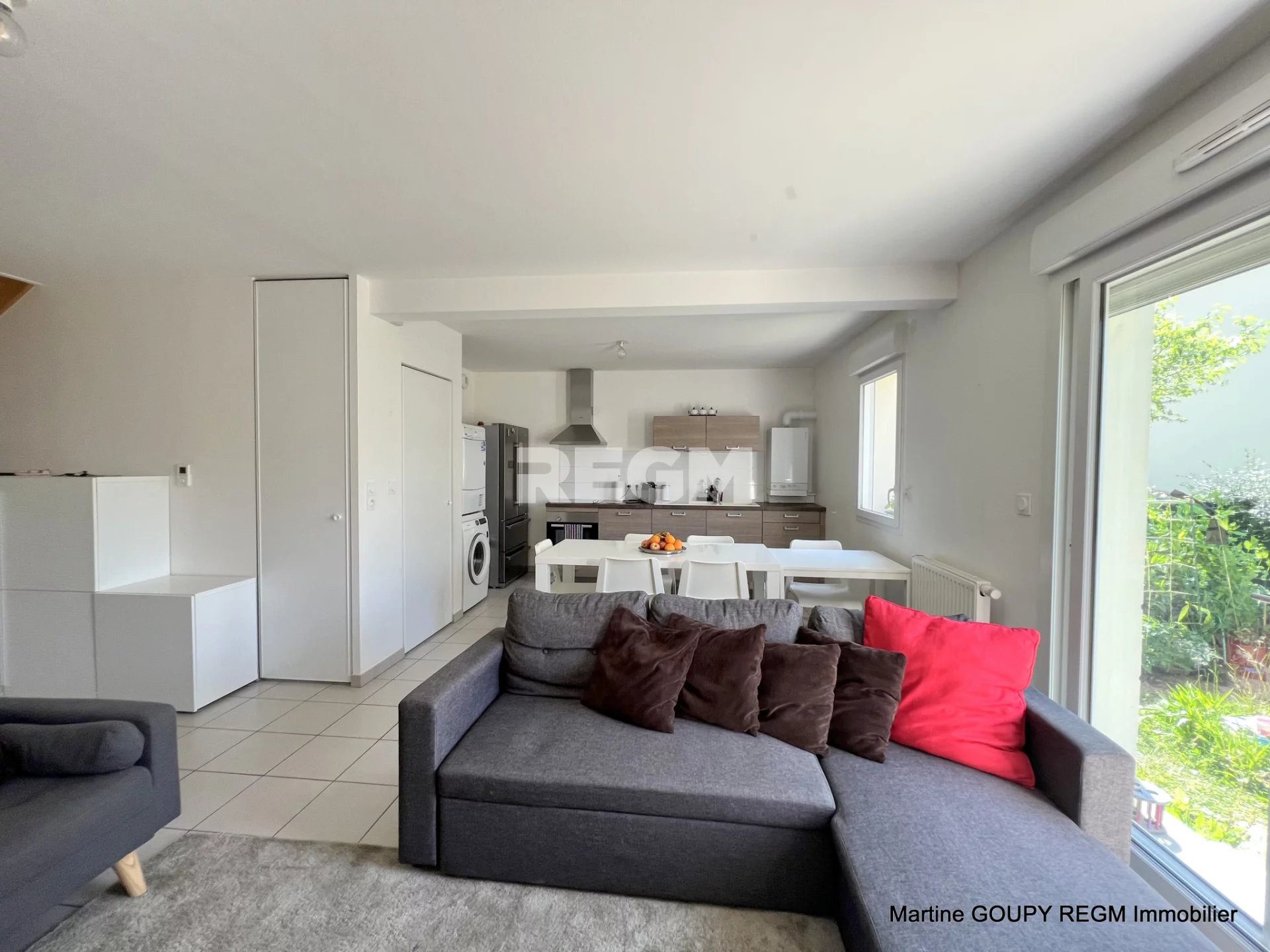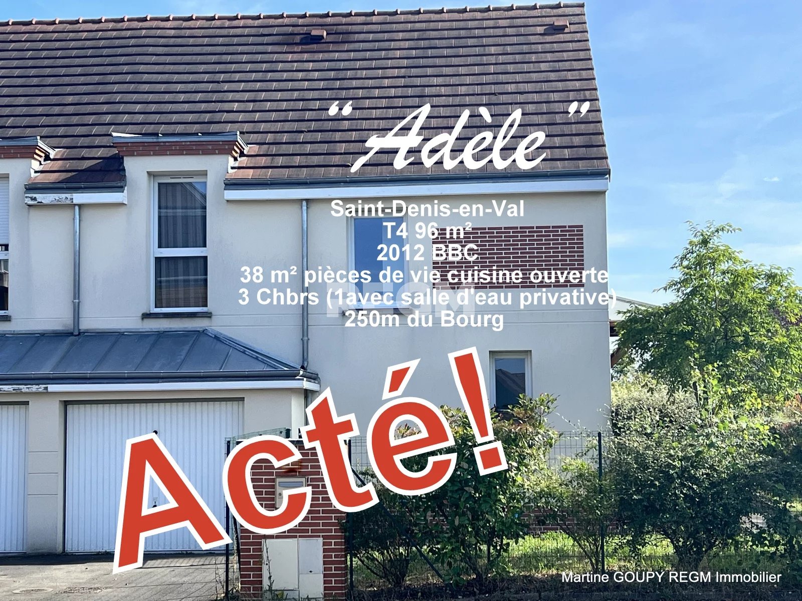 ST DENIS EN VAL (45) « Adèle » Secteur très prisé aux portes d'Orléans, maison de 2012 BBC très bien distribuée. Sur une parcelle close de 327 m2, accès rampe PMR, 96 m2 habitables, la belle pièce de vie lumineuse de 38 m2 qui vous accueille avec sa cuisine aménagée et équipée pose immédiatement l'esprit de la maison. Porte fenêtre sur le jardin et la terrasse pavée, au premier niveau également spacieux WC avec fenêtre et lave mains, garage accès par l'extérieur. L'étage est tout aussi accueillant, 5 m2 de palier avec placard, 3 belles chambres dont une avec salle d'eau privative et une avec placard. Grande salle de bains de 6.50 m2 également dotée d'un placard. L'ensemble est parfaitement entretenu,. Place de parking devant le garage, mitoyenneté sur un côté, chaudière gaz Viessmann Vous êtes à proximité du bourg que vous pouvez rejoindre par un chemin sécurisant, vous y trouverez toutes les commodités du quotidien des commerces de qualité, ainsi que les infrastructures scolaires primaires et collèges, centre de loisirs, bus etc... Ceux qui vivent à St Denis en Val n'ont qu'un souhait y rester ! A voir rapidement Martine GOUPY REGM Immobilier 06 76 06 03 67