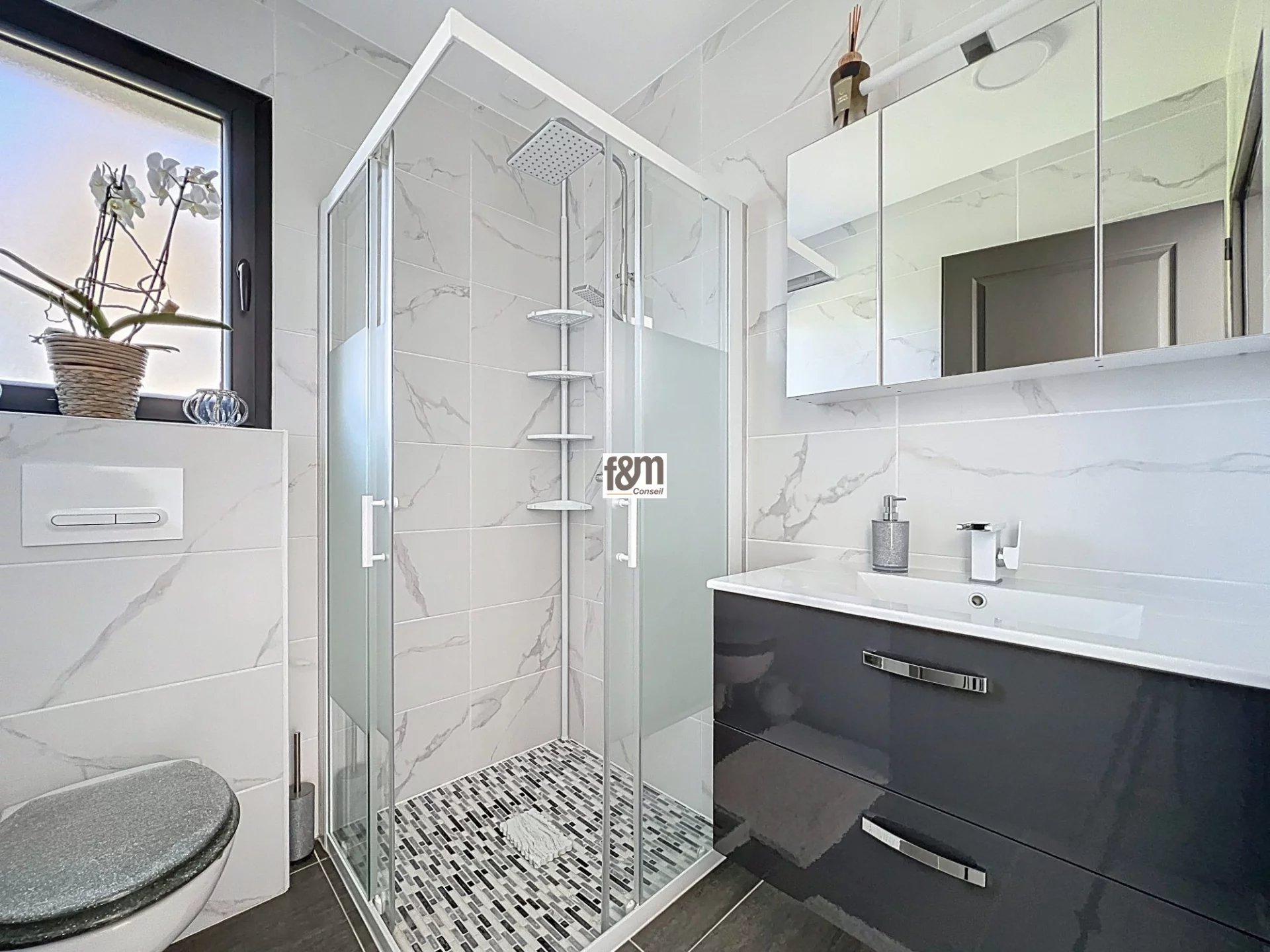 Matériaux de construction de bonne facture et belles prestations: volets roulants motorisés, pompe à chaleur AIR/EAU avec planchers chauffants sur deux niveaux. Très bonnes performances énergétiques!