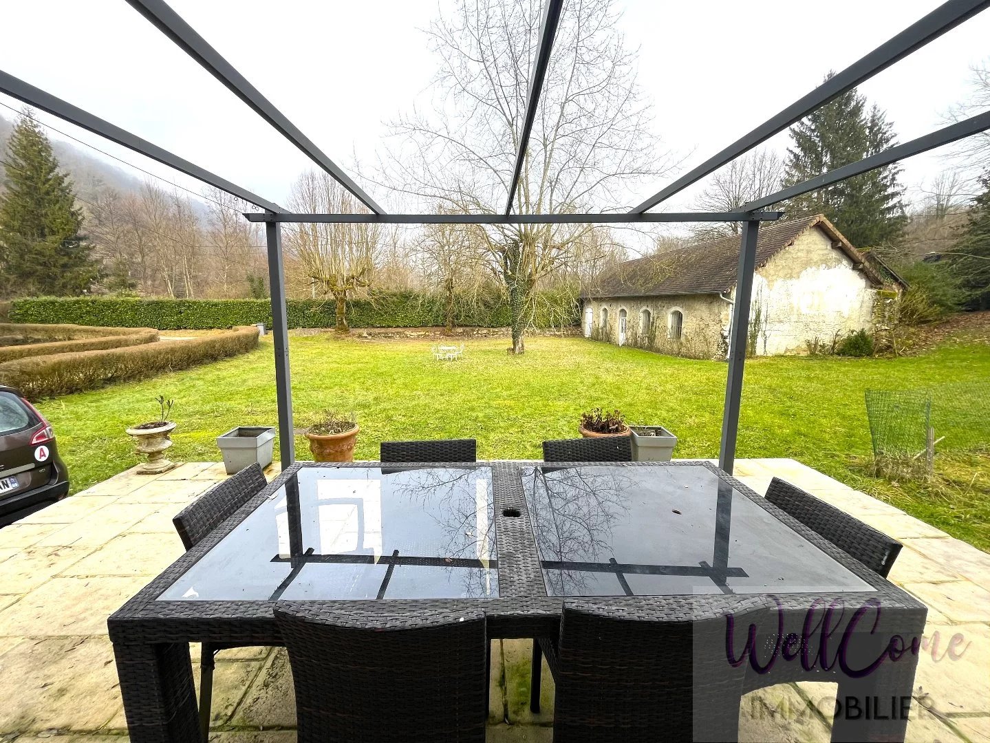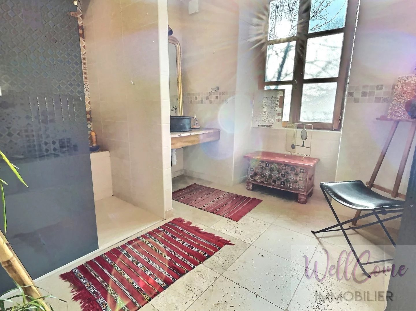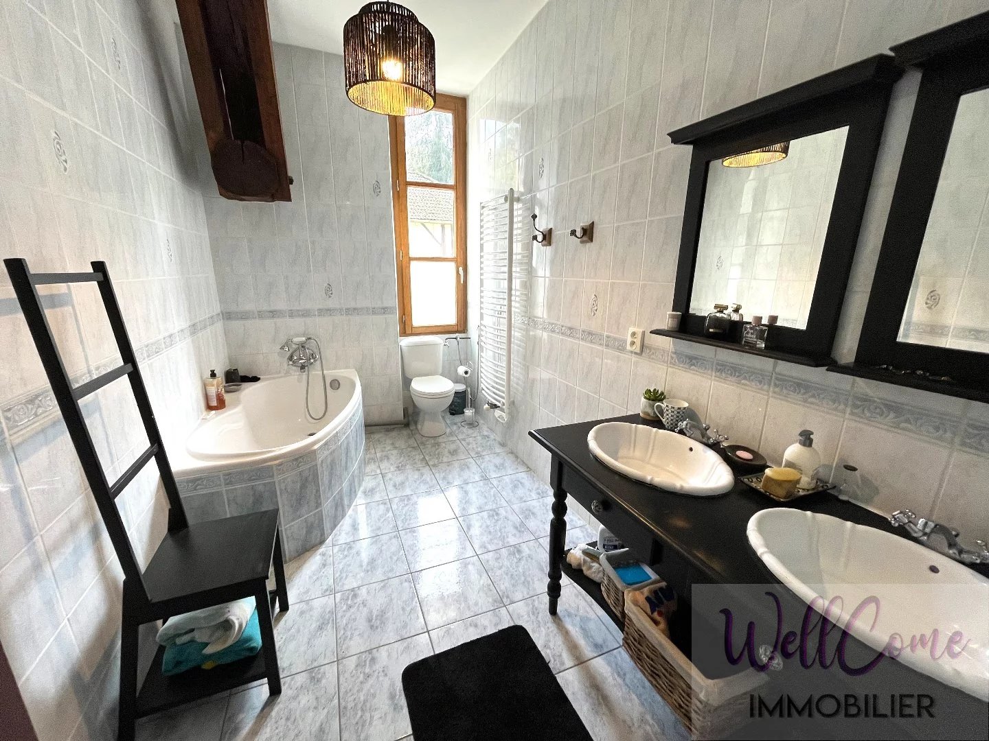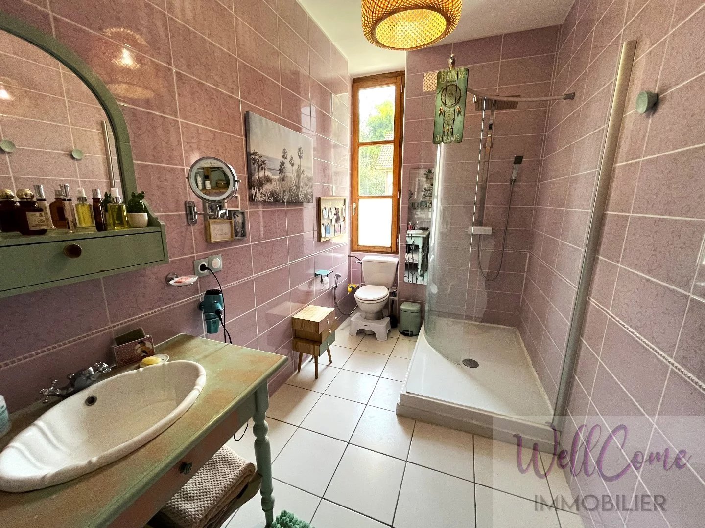 Saint Geoire en Valdaine, propriété champêtre pleine de charme idéalement située entre Lyon, Grenoble, Chambéry et Genève à quelques minutes des lacs d'AIguebelette et de Paladru, et comprenant une maison principale de 9 pièces entièrement rénovée et deux bâtiments annexes, le tout niché dans un parc arboré de près de 2 hectares propice à la détente et bordé par un ruisseau aux eaux claires. Un havre de paix et de verdure s'offre à vous. Le murmure de la rivière a de jolies histoires à vous conter sur cette bâtisse restaurée avec goût. L'accès à la propriété est sécurisé par un portail automatique. L'ensemble de la parcelle est cloturé. La maison principale offre près de 215 m² de surface répartie sur 2 niveaux. Le rez de chaussée accueille un hall d'entrée, un bureau, un vaste séjour double de 37m² au style industriel assumé, une cuisine équipée de 31m² avec sa salle à manger et son poêle, une première chambre de près de 14m², une élégante salle d'eau, un Wc séparé et une buanderie. Accès à la terrasse et au jardin tout autour. L'étage dispose de 5 chambres aux volumes généreux et aux ambiances variées. Des fenêtres vous pourrez de toute part admirer la nature qui vous entoure. Une salle de bains et une salle d'eau ainsi que 2 WC complètent la surface de l'étage. Les prestations incluent entre autres une chaudière récente à condensation, un poêle à bois neuf, des panneaux photovoltaïques neufs (consommation et revente d'énergie). Deux beaux bâtiments annexes sont implantés sur le terrain de quoi laisser libre court à votre imagination pour de futurs projets ou tout simplement pour entreproser vos véhicules ou équipements. Vous cherchiez un ilôt de verdure pour vous épanouir en famille au bord de l'eau et dans un confort maximum? Cette propriété au caractère unique sera votre prochaine destination! Prix TTC et Honoraires à charge vendeur TTC