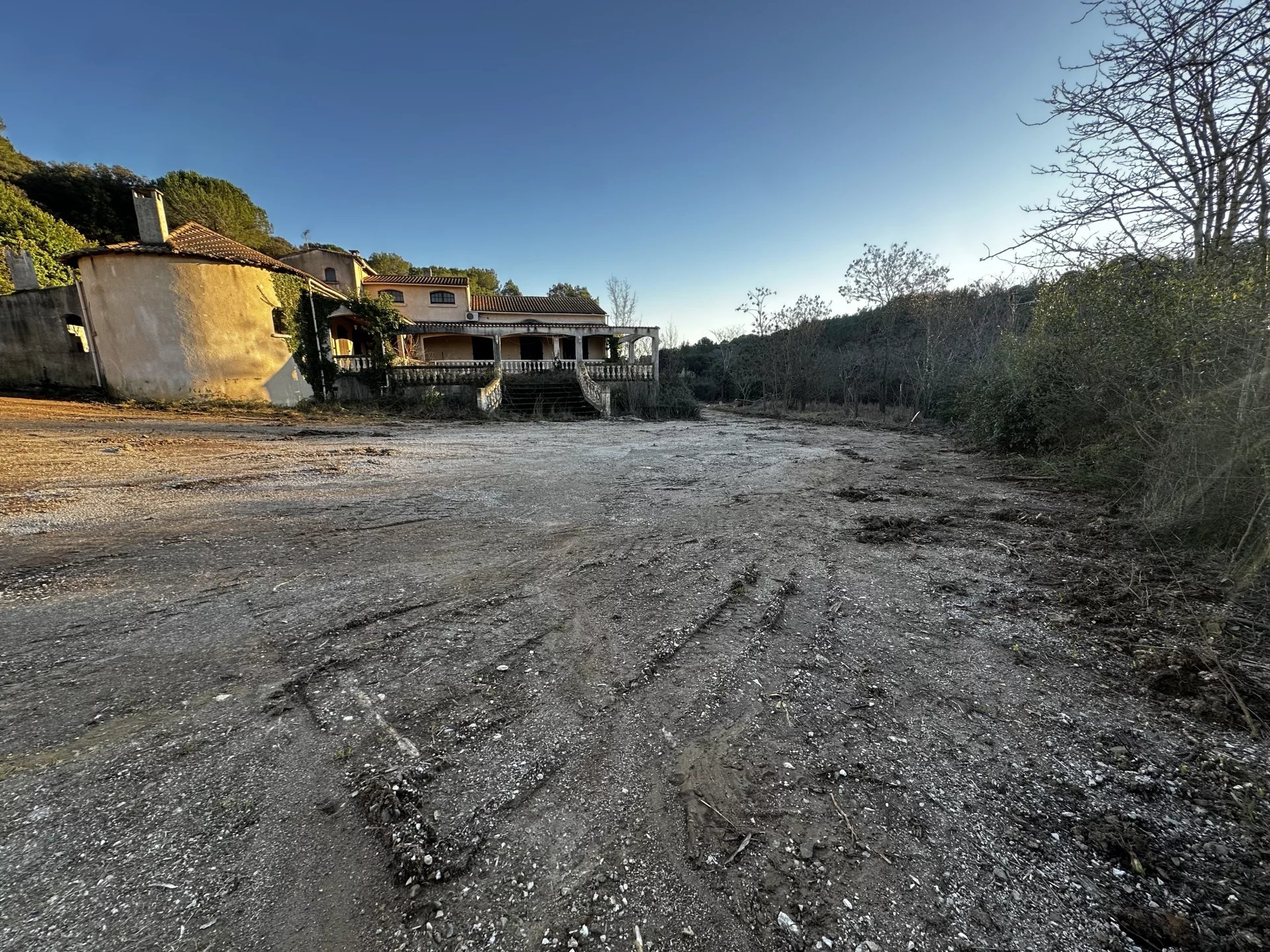 une bâtisse des années 80 – env. 450 m² habitables + 100 m² de sous-sol, sur 2 500 m² privatifs.