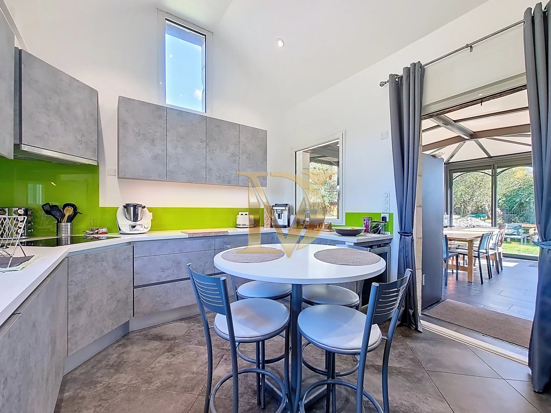 La propriété se compose d’une maison principale chaleureuse et lumineuse, comprenant un salon/salle à manger, une cuisine aménagée avec accès à une véranda, deux chambres, une salle d’eau et une lingerie.