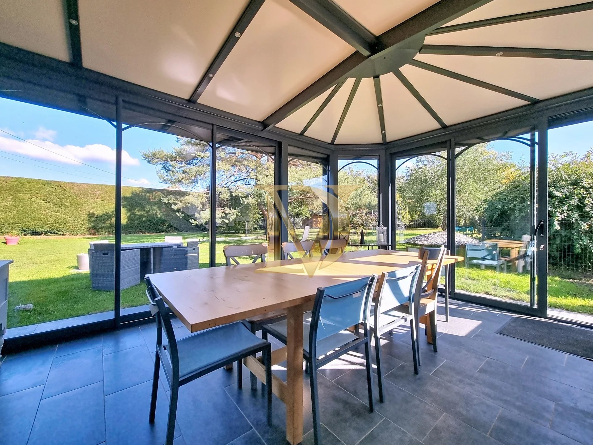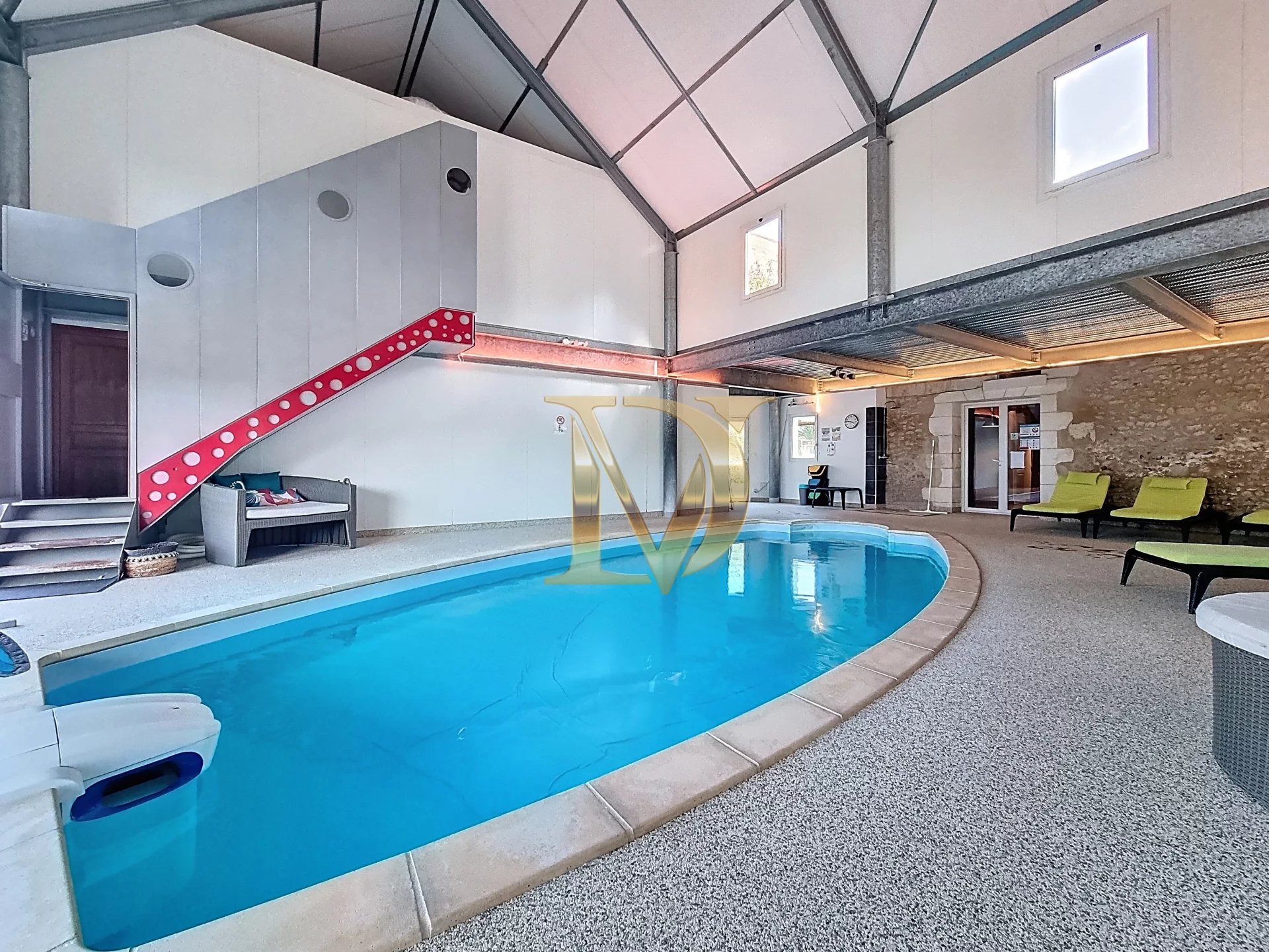 Les prestations sont complétées par une piscine intérieure chauffée, un espace SPA, un garage, un parking intérieur et un terrain arboré soigneusement entretenu.