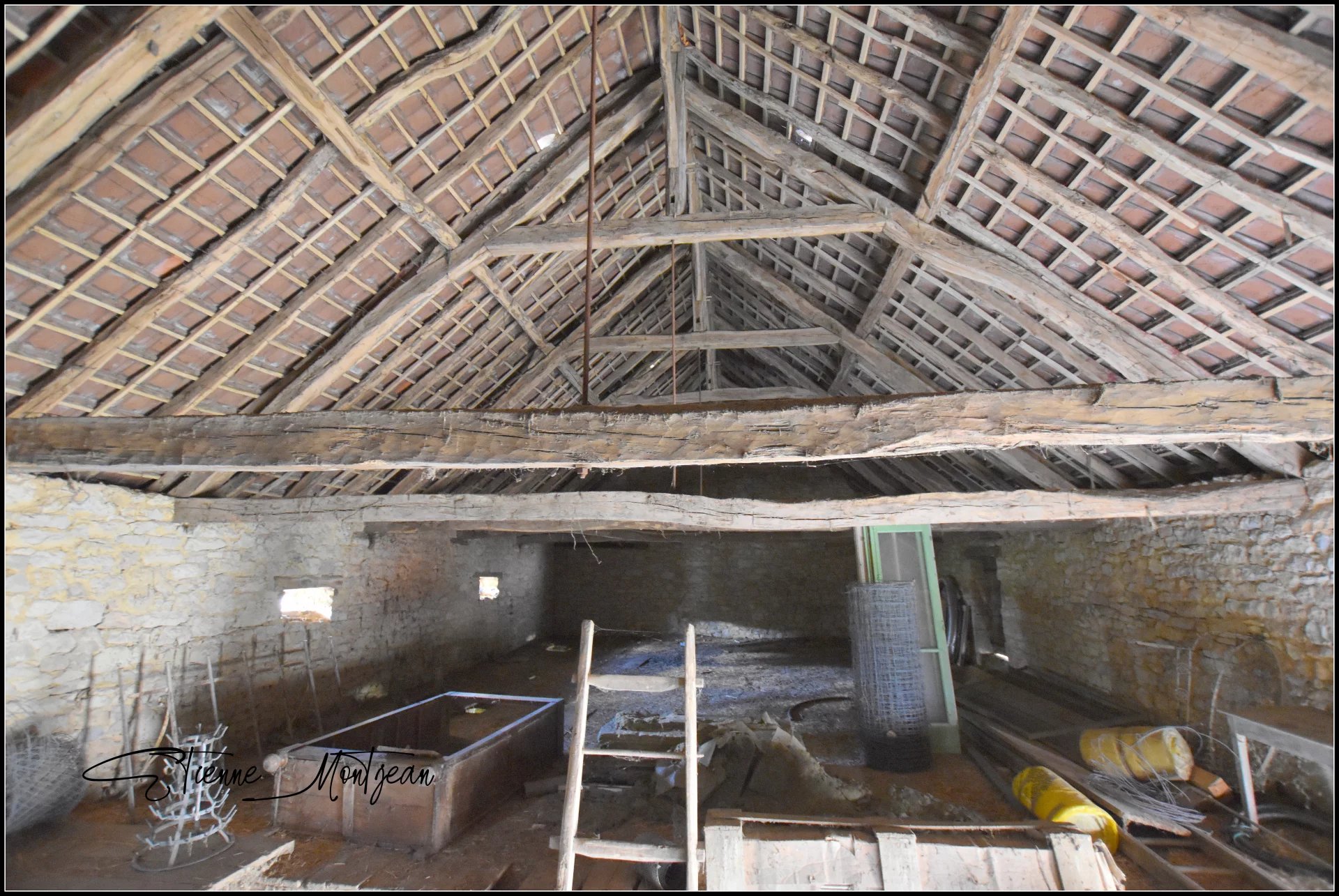 La grange développe 140 m² au sol avec une très belle hauteur sous poutres, permettant la création d’un étage complet sans contrainte.