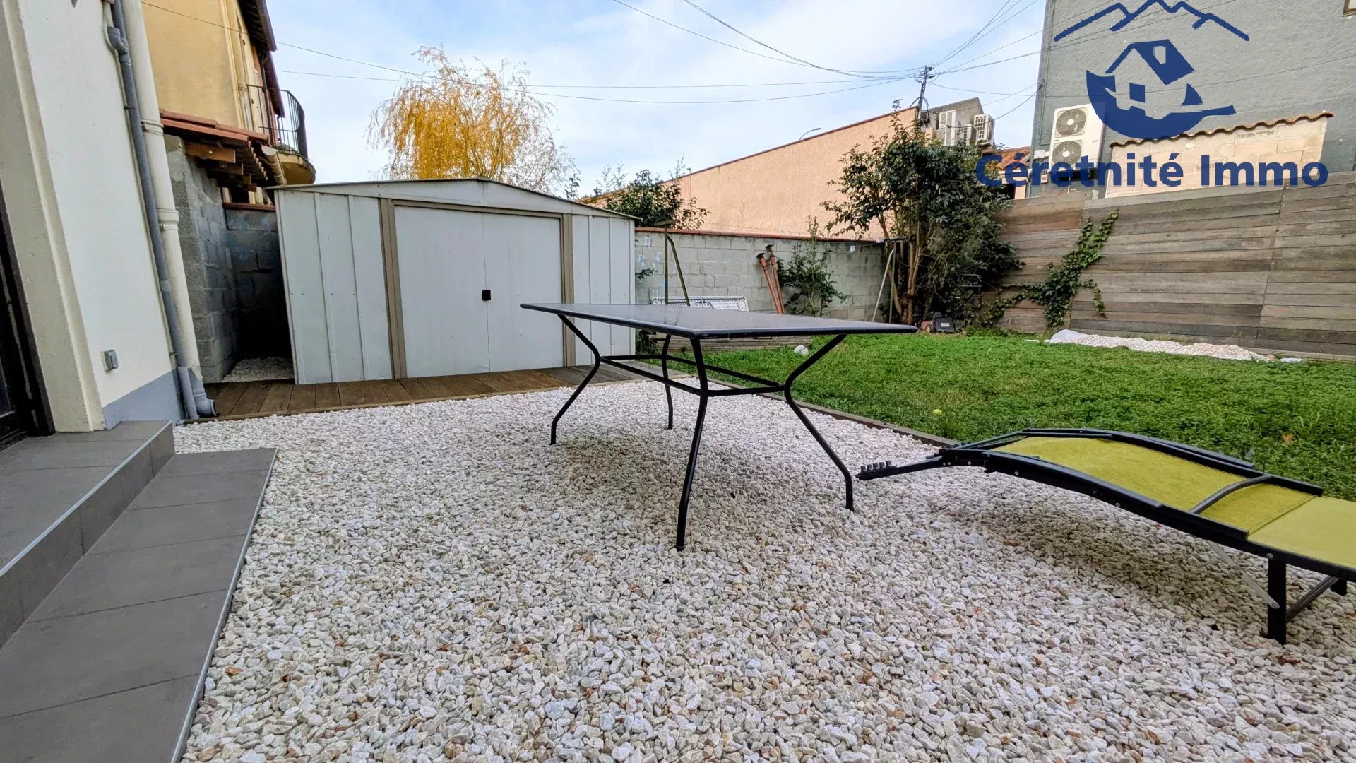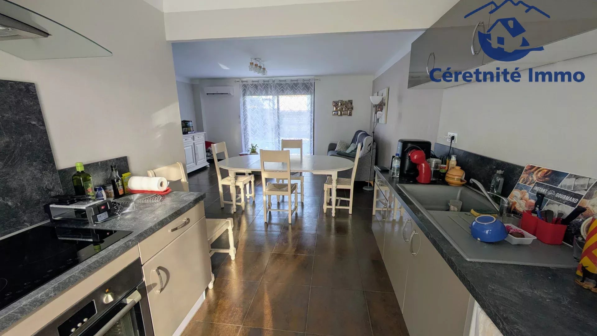 Céretnité Immo vous propose cette villa située proche des commodités à pied. La maison est équipée d'éléments de confort moderne (double vitrage, climatisation réversible, chauffage à inertie, parquet flottant, SDE...).