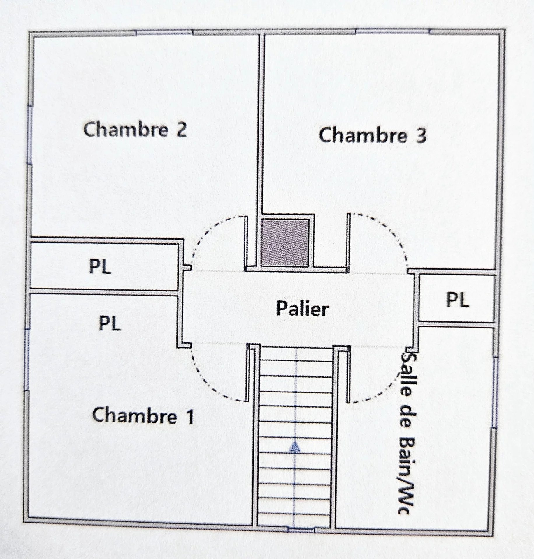 Le premier étage se compose de trois spacieuses chambres et une salle de bain de 8m².