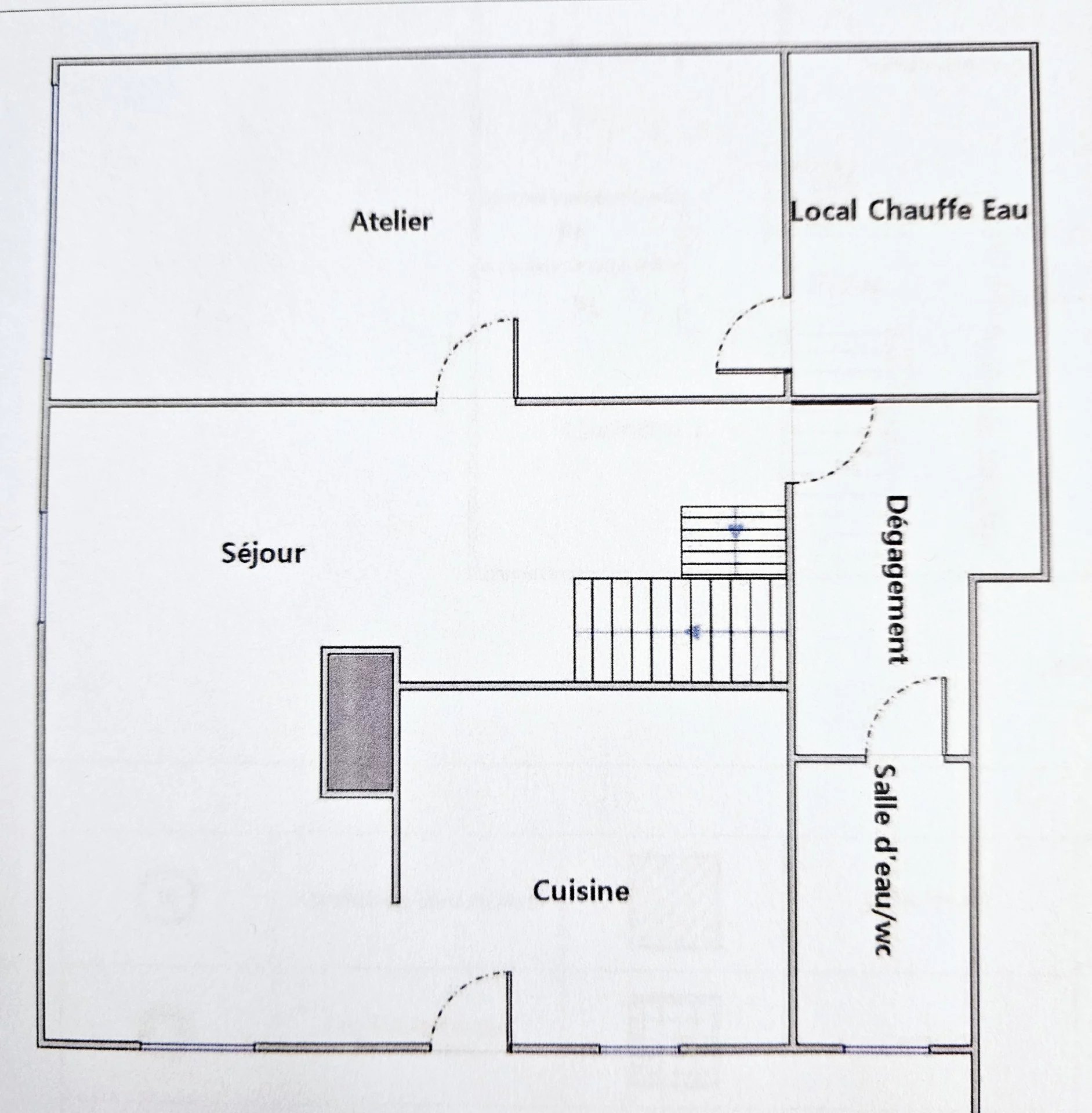 La partie plain-pied se compose d'une spacieuse pièce de vie de 50m² incluant la cuisine, 34m² d'atelier attenants, 8m² de cellier et une salle d'eau de 6m².