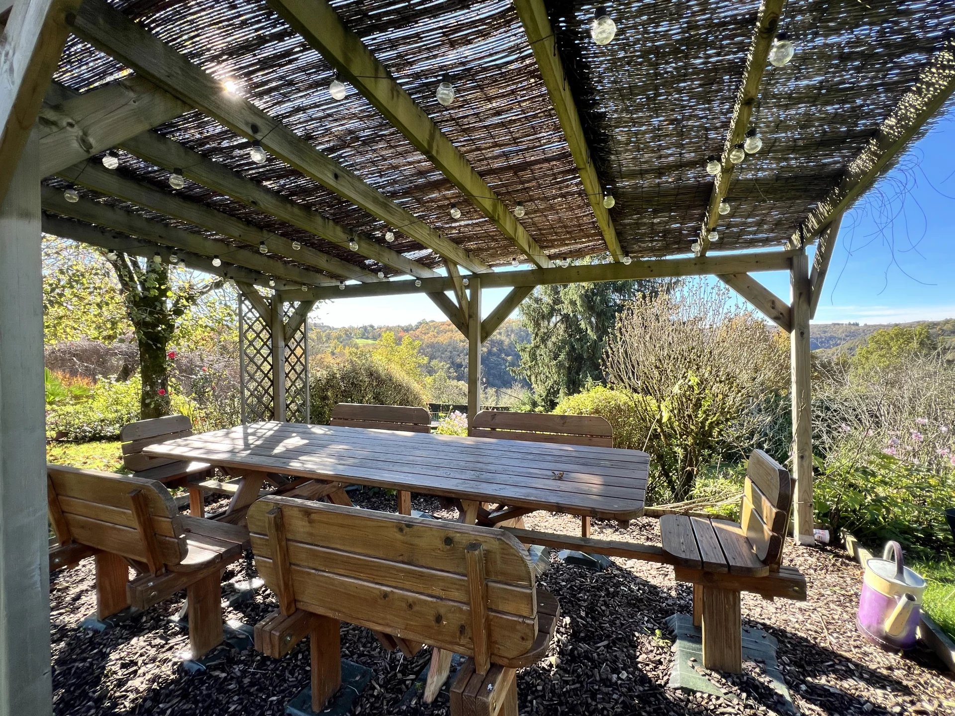 La terrasse orientée plein sud invite à la détente face à la nature, tandis qu’une seconde terrasse, côté nord, abrite un espace barbecue idéal pour les repas d’été.