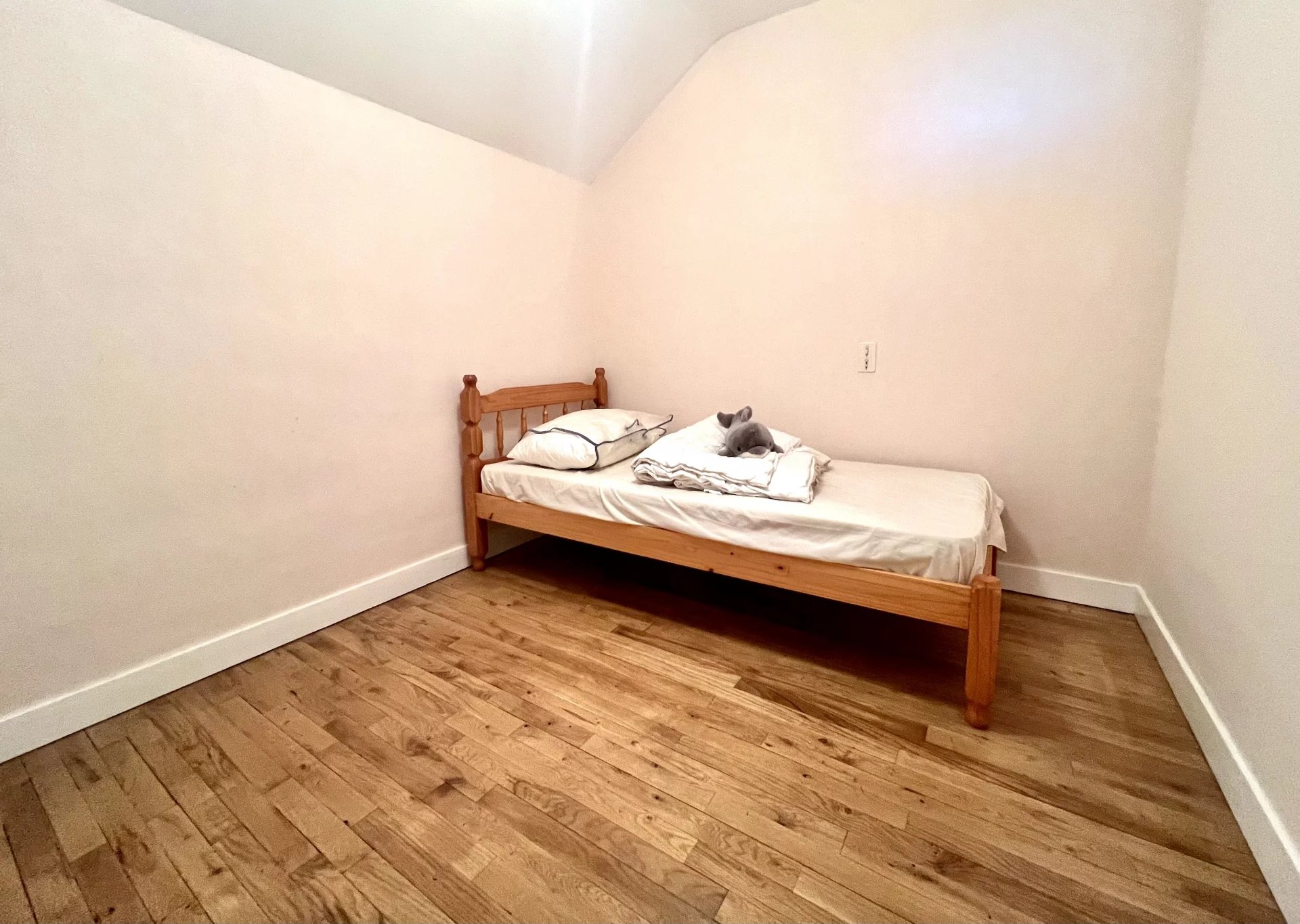 À l’étage, une grande chambre sur parquet profite de nombreux rangements. On y trouve également une salle d’eau, des WC, une petite pièce pouvant servir de chambre d’appoint, ainsi qu’un vaste espace sous rampants de plus de 35 m² offrant un beau potentiel d’aménagement selon vos envies : bureau, salle de jeux ou suite parentale.