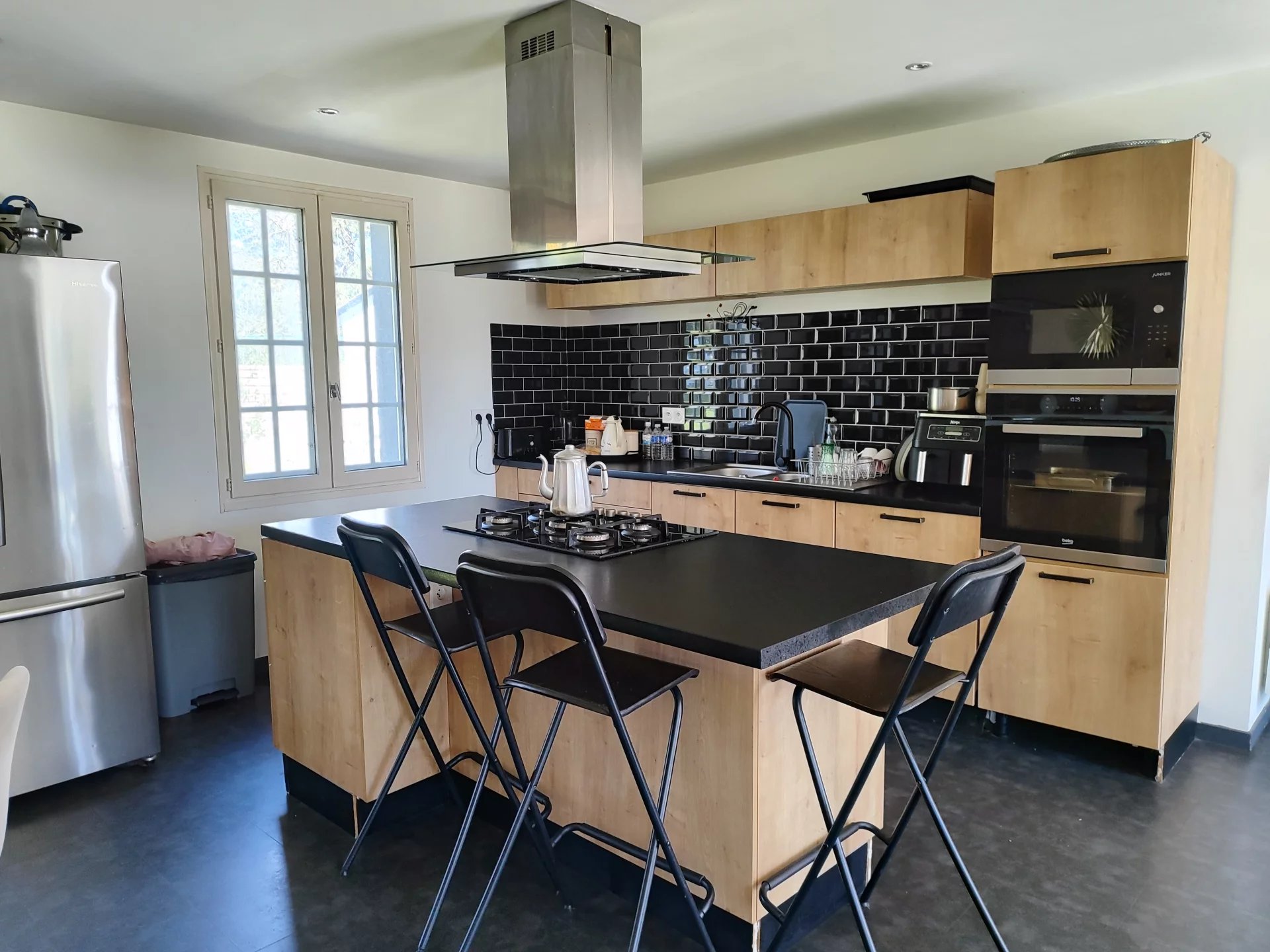 Dès l’entrée, vous découvrirez une pièce de vie lumineuse et chaleureuse, agrémentée d’une cheminée et d’une cuisine ouverte, idéale pour partager des moments conviviaux en famille ou entre amis.