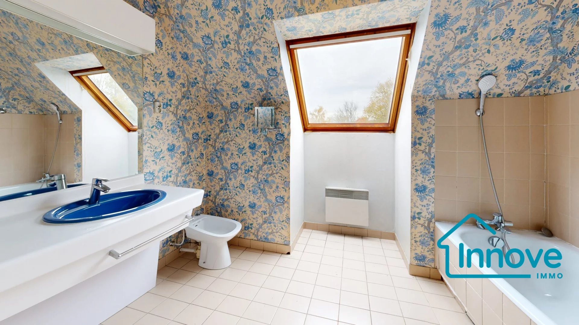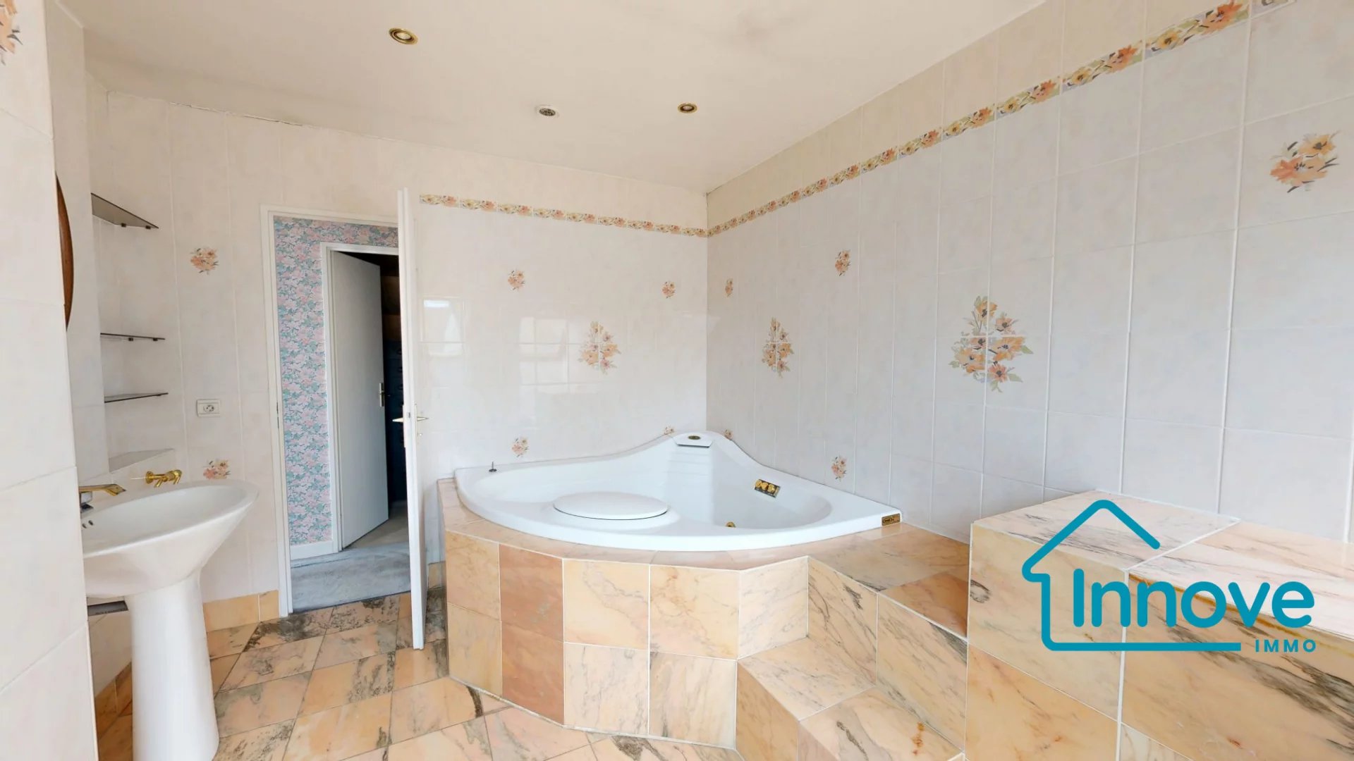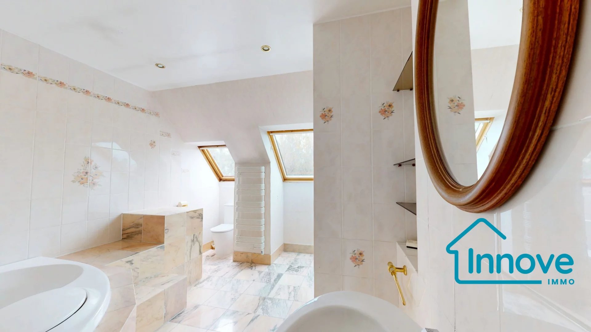 À l'étage : 5 chambres supplémentaires, 2 salles d'eau et une salle de bains. C'est une configuration parfaite pour une famille nombreuse.