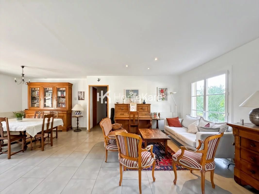 Cette maison entièrement de plain dispose d'un séjour lumineux et traversant de 66 m2 avec sa cuisine semi-ouverte entièrement équipée.