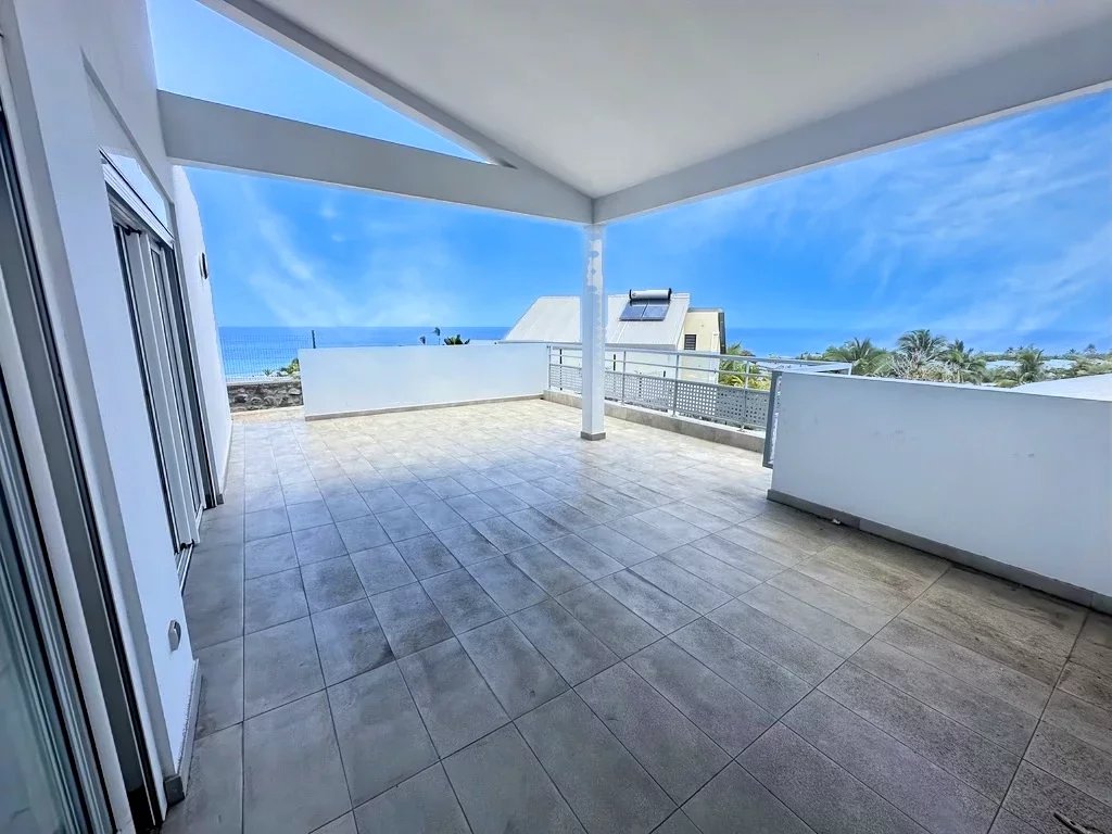 Un salon lumineux, spacieux et agréable, donnant sur une grande varangue qui profite d’une magnifique vue sur l’océan.
