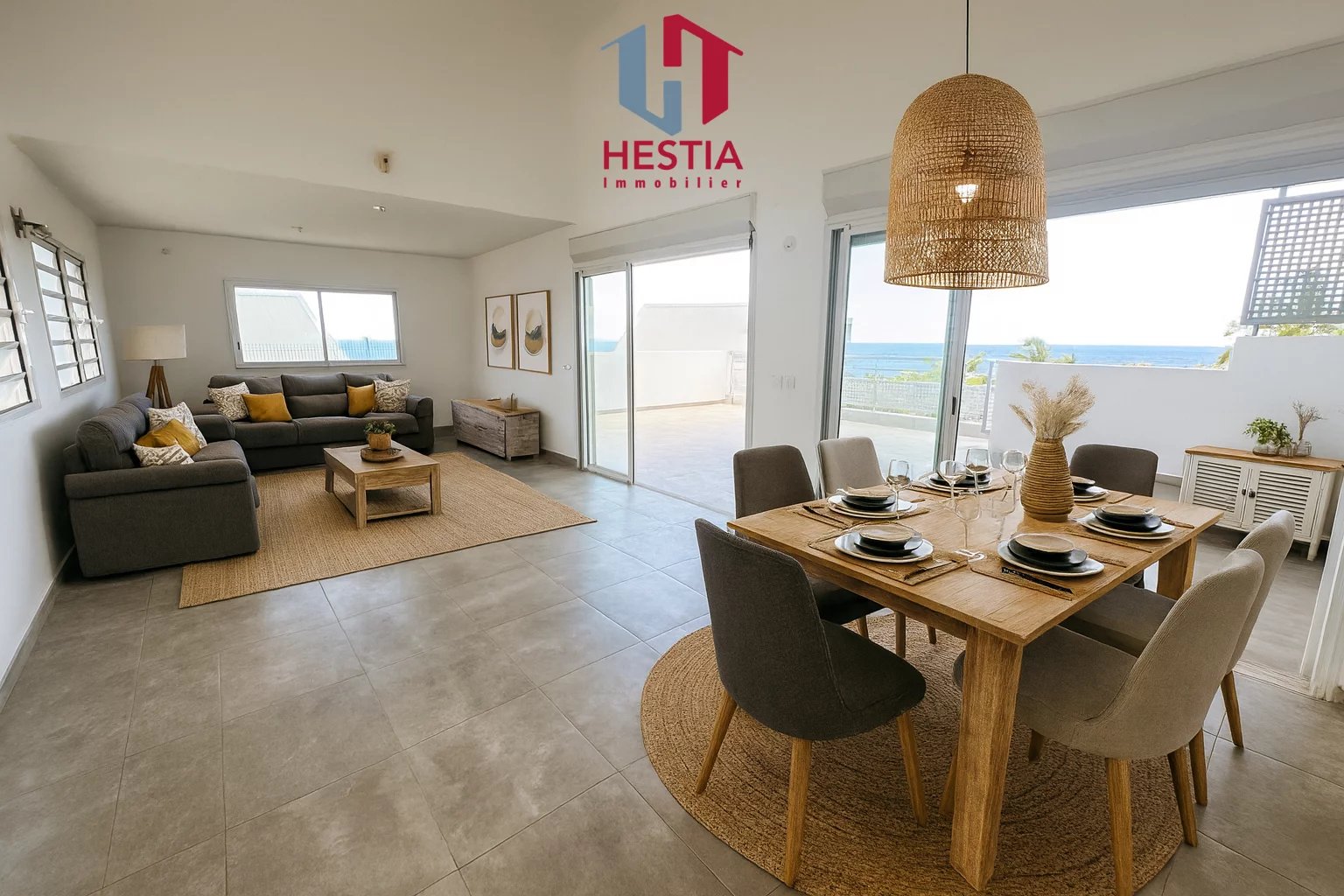 Elle se compose de deux niveaux, offrant une belle harmonie entre confort, modernité et vue imprenable sur la mer.