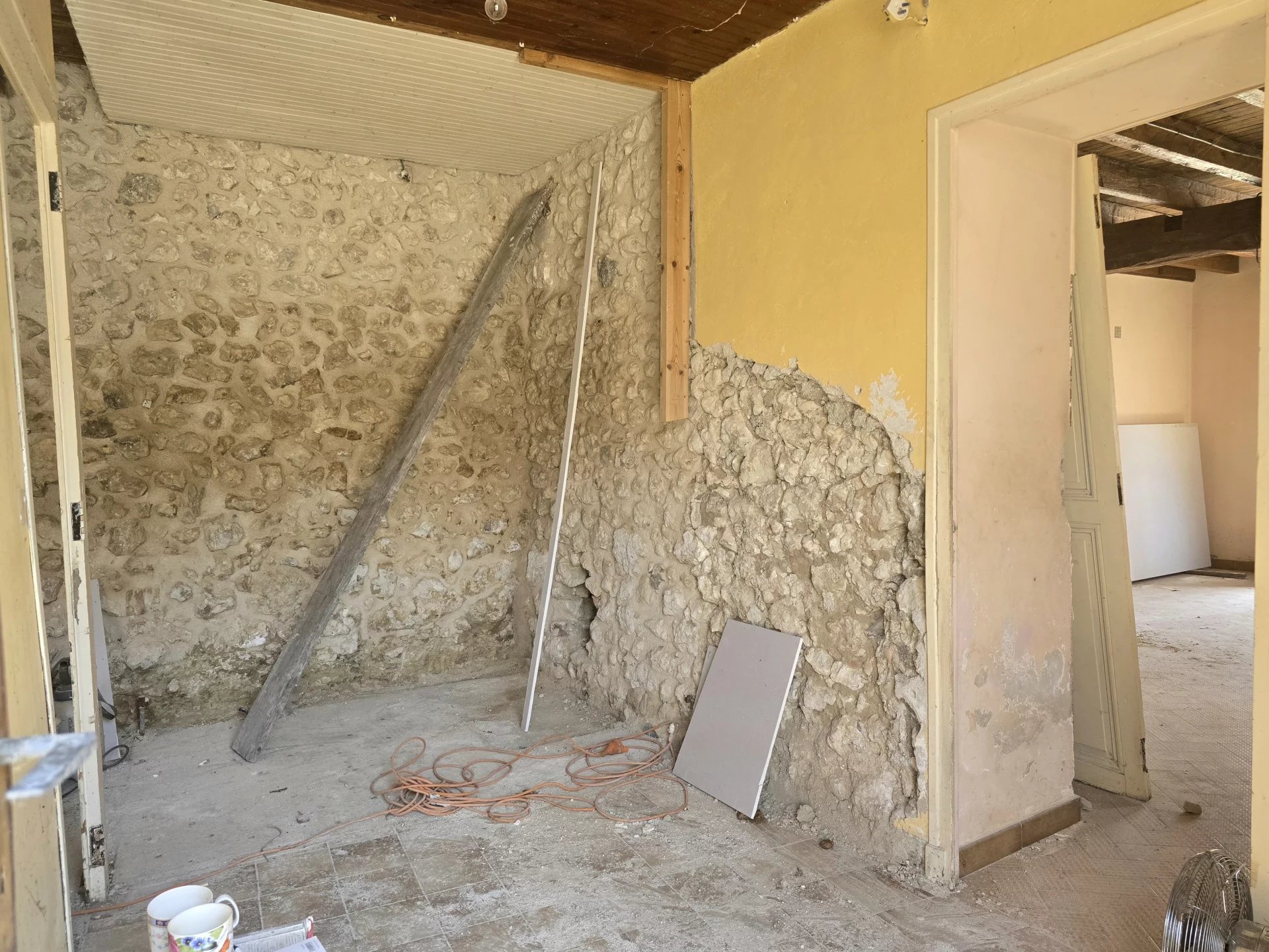 Une rénovation à poursuivre donc pour cette maison qui offre au rdc: une entrée, une cuisine avec cheminée de 17,5 m2, une réservation pour installation des toilettes, et salon de 20 m2 donnant sur une courette exposée plein sud.