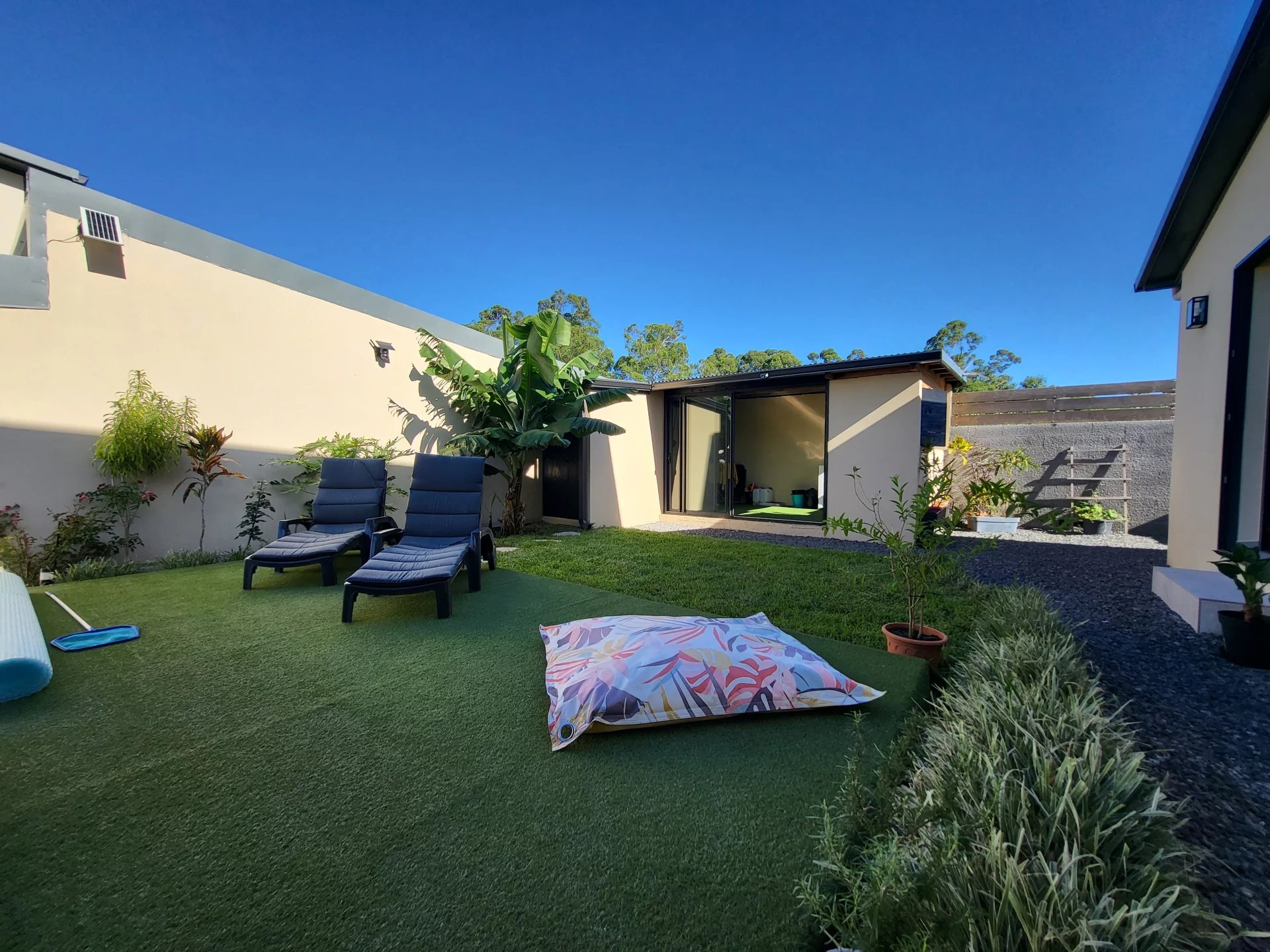 Environnement calme : éloignée des nuisances sonores tout en restant proche des commodités, écoles, et plages de Saint-Pierre.