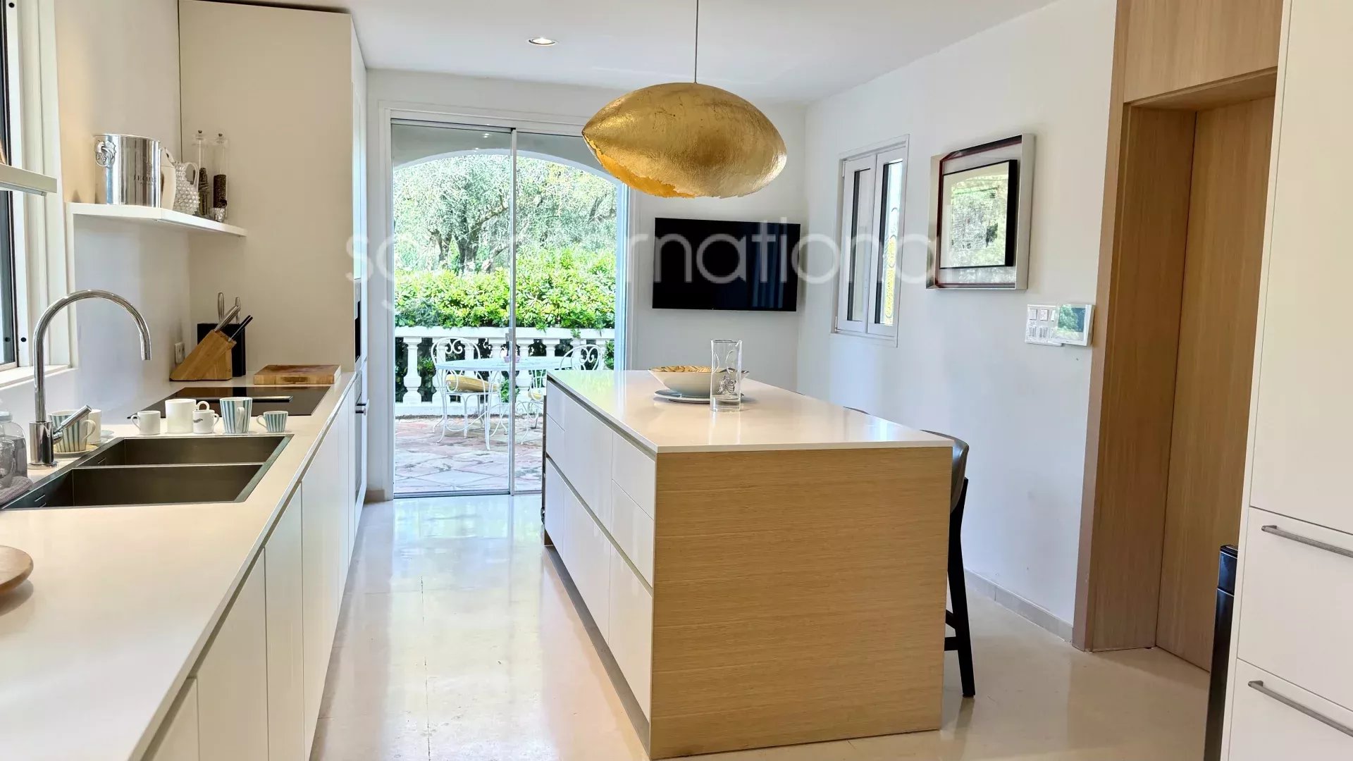 Rez de jardin: entrée - grande pièce de vie ouvrant sur le jardin et la piscine - grande cuisine équipée - 3 chambres avec salle de bains et dressings