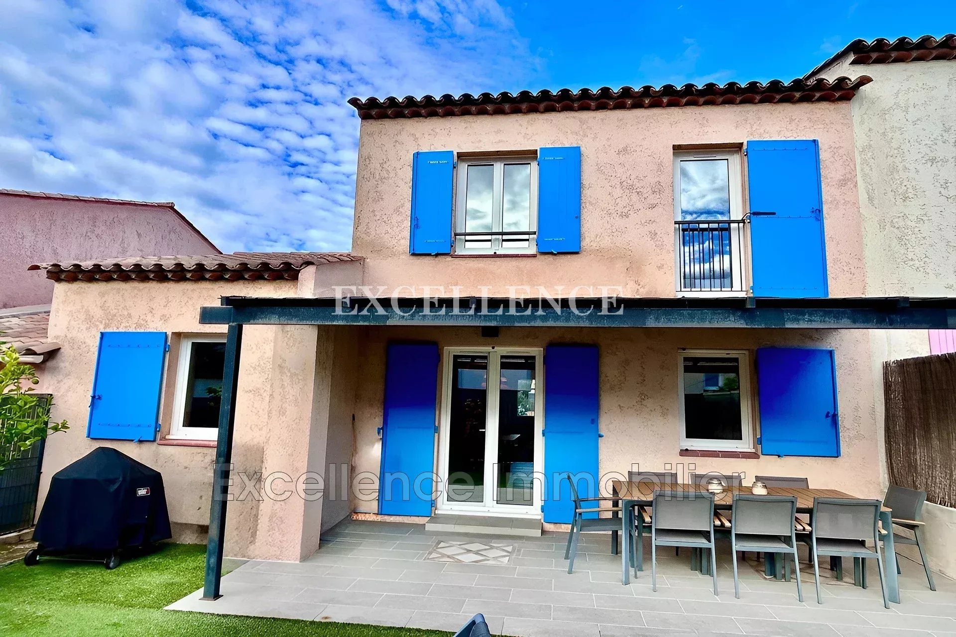 545 000 €Jolie maison mitoyenne située dans une résidence avec piscine à proximité du golf et des plages de Sainte Maxime. Elle offre de plain pied un lumineux séjour, une cuisine entièrement aménagée, une chambre avec sa salle de douche. A l'étage trois chambres avec une salle de douche. A l'extérieur un garage et jardinet.