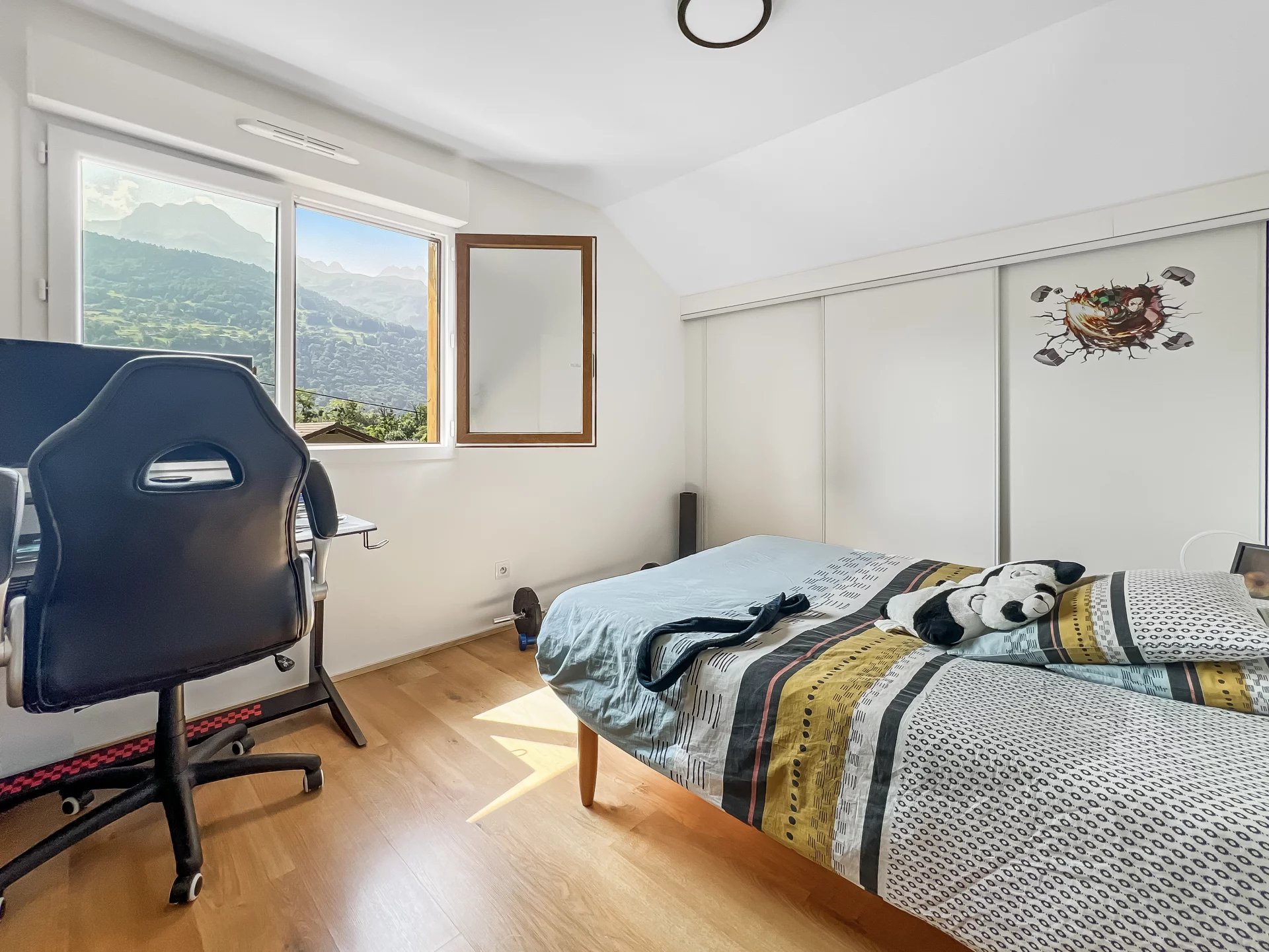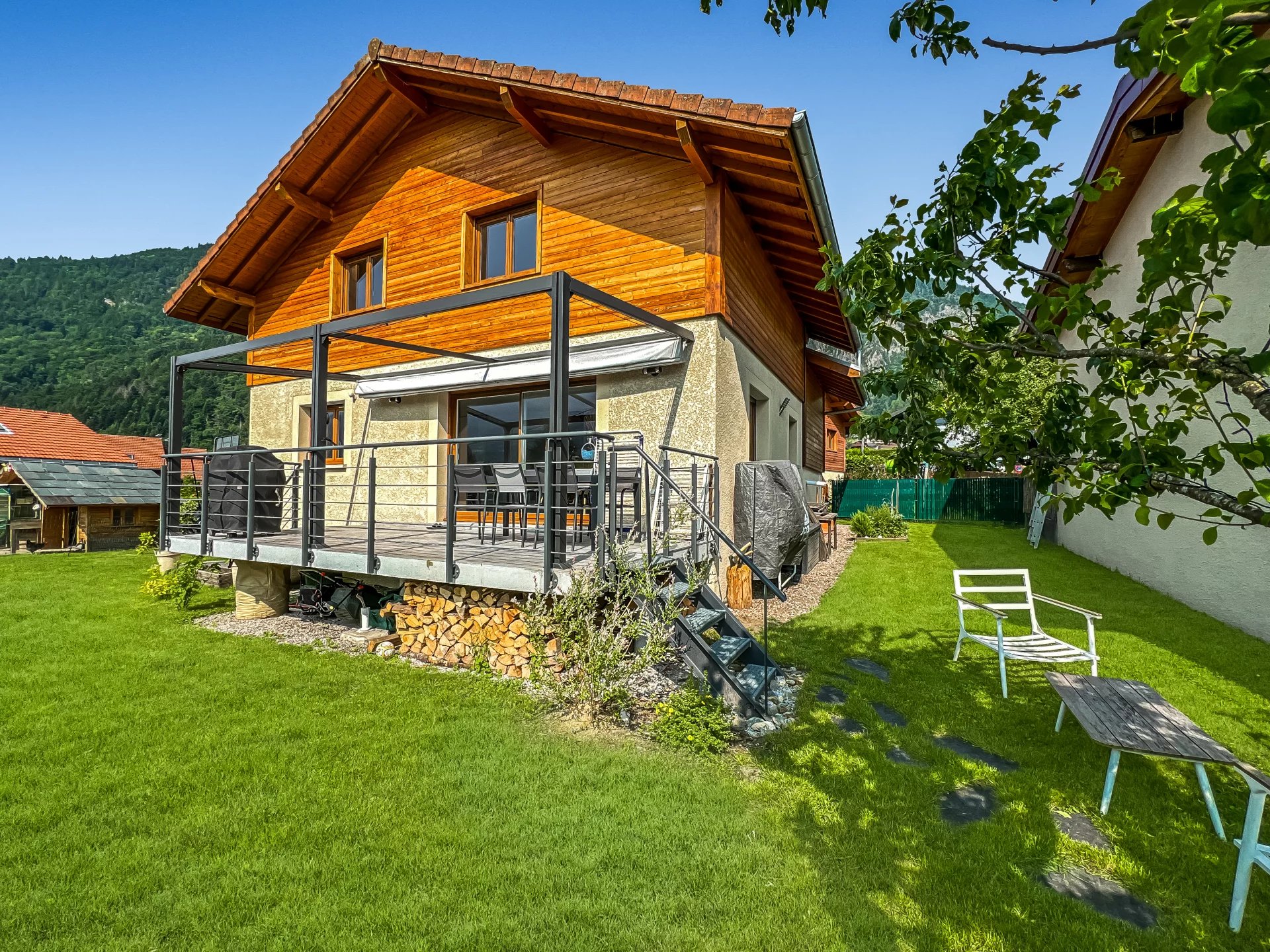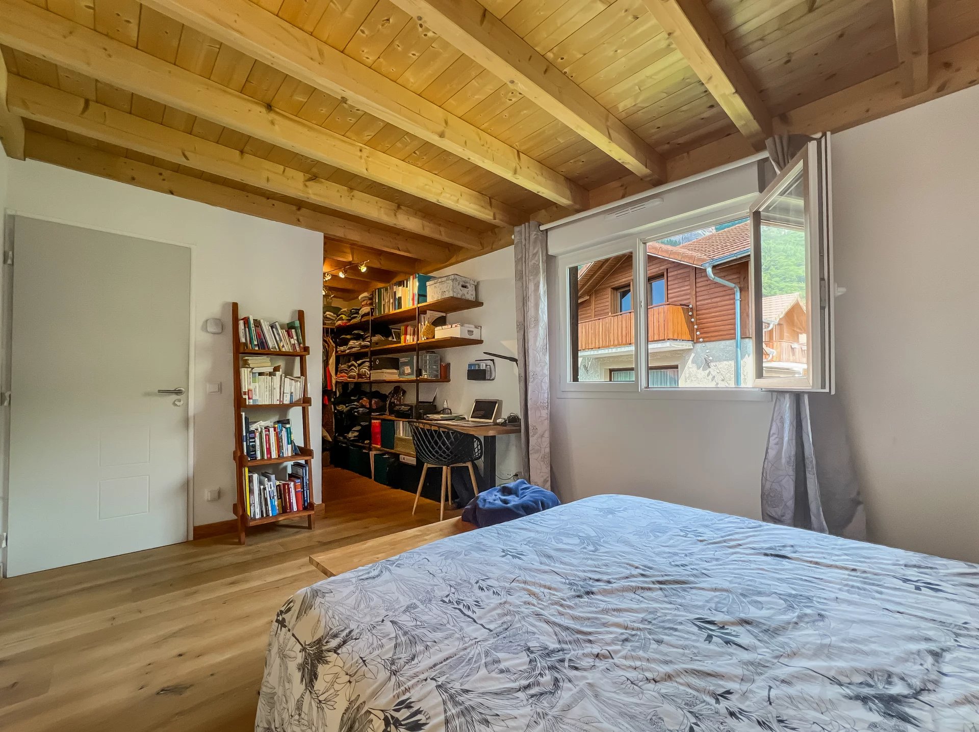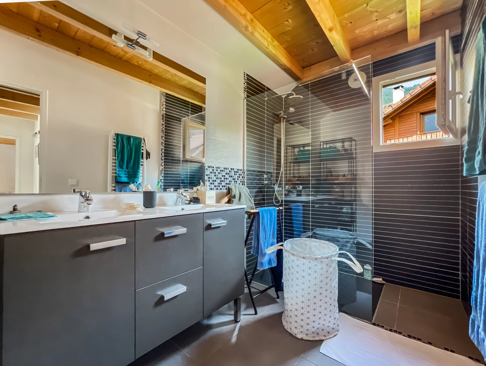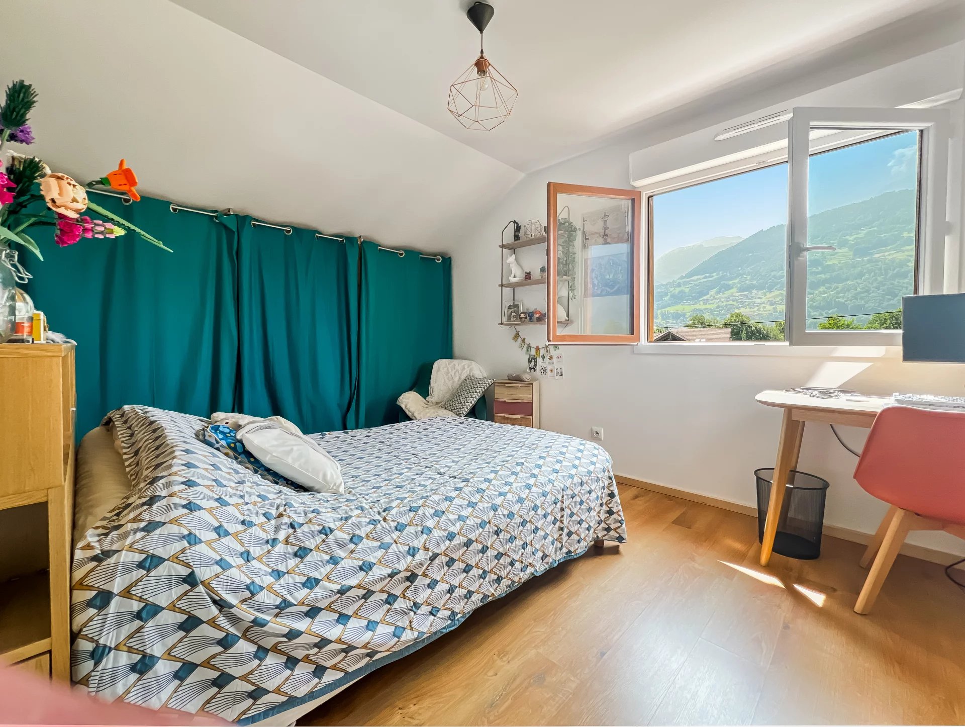 Cette maison en demi-niveaux offre de beaux volumes avec un séjour, salon et cuisine ouverte de 42 m², s'ouvrant sur une grande terrasse surélevée orientée ouest, bénéficiant d’une vue imprenable sur les montagnes.