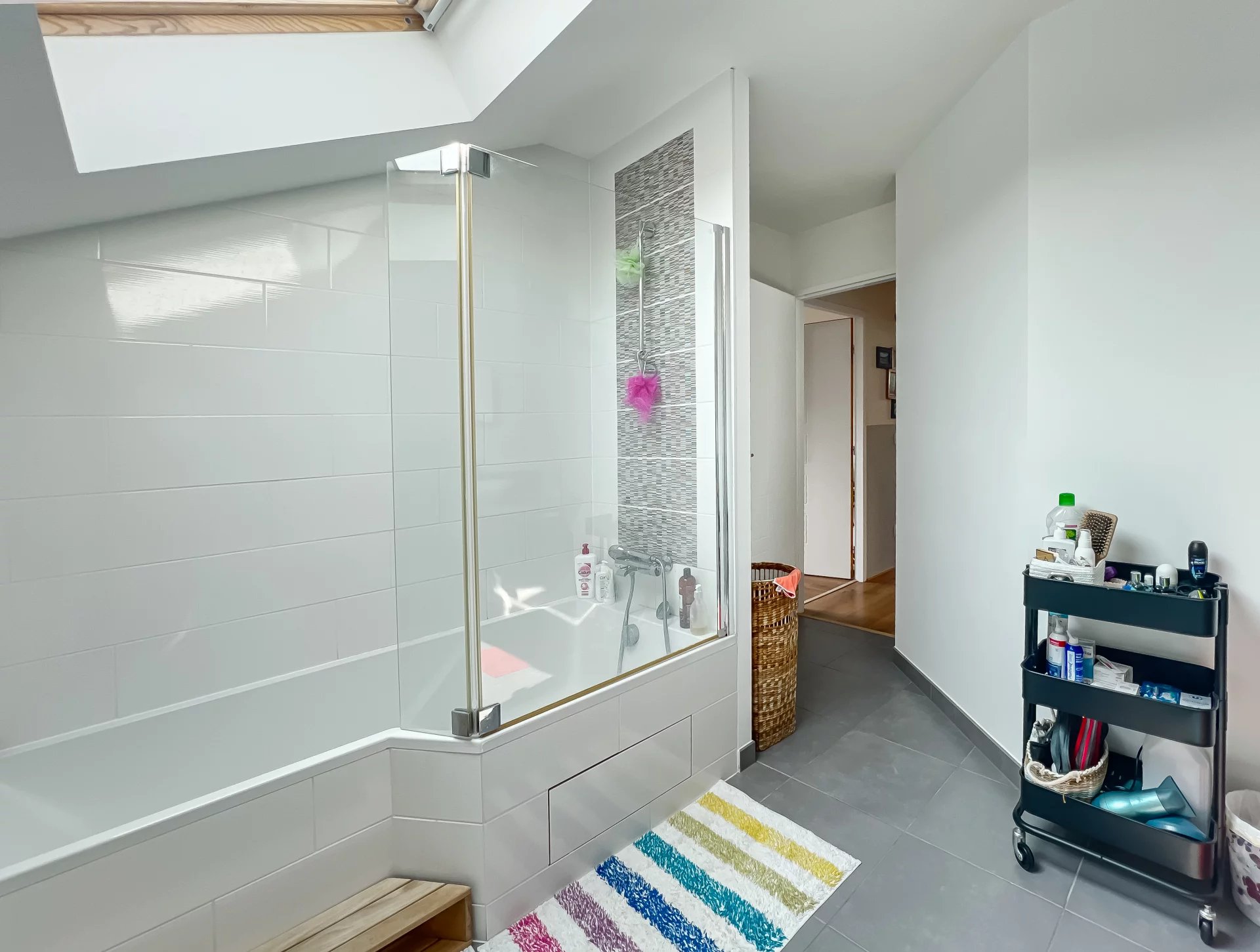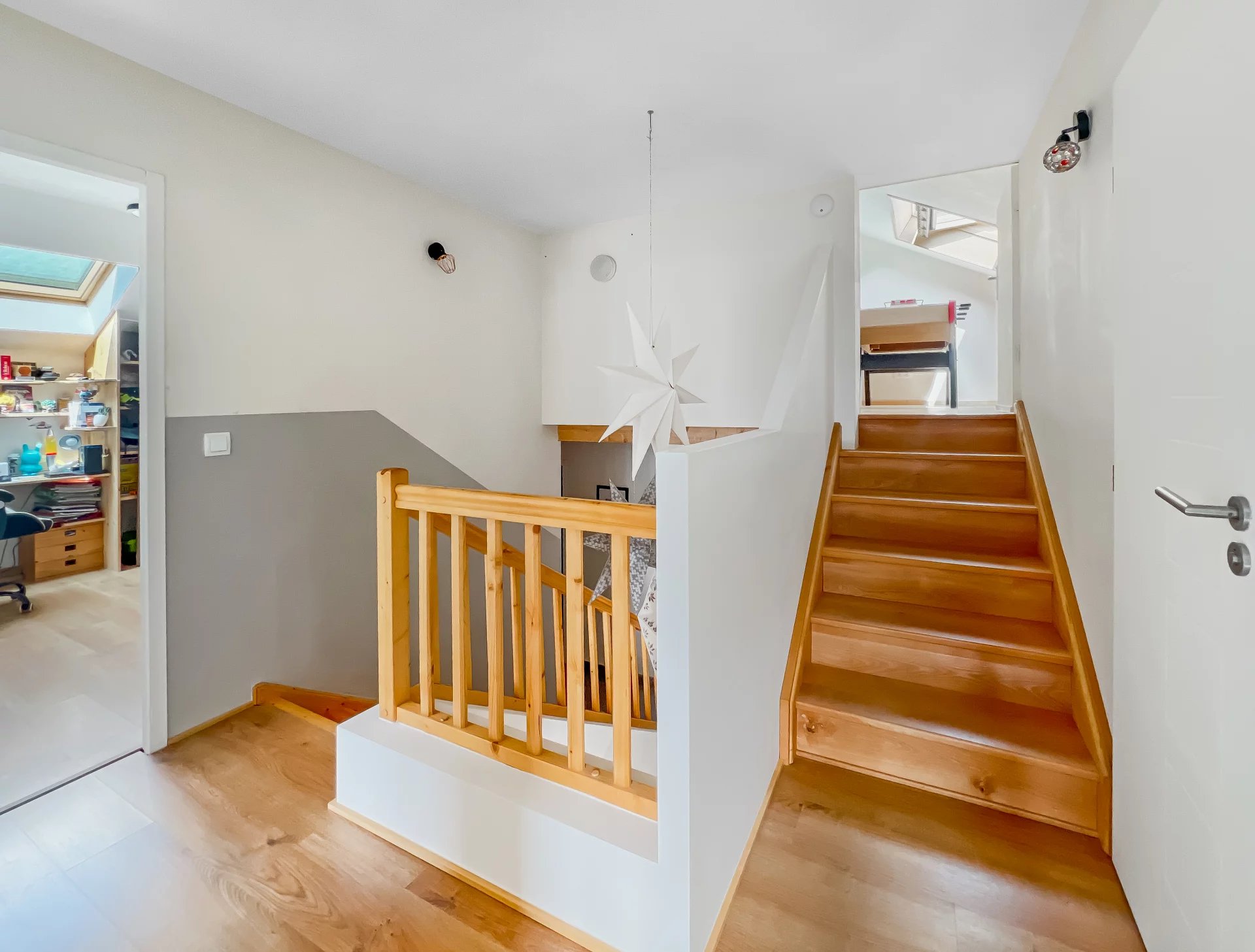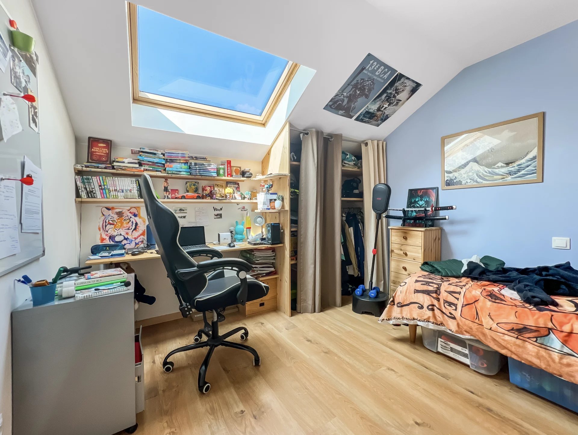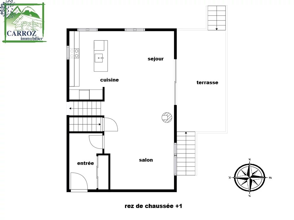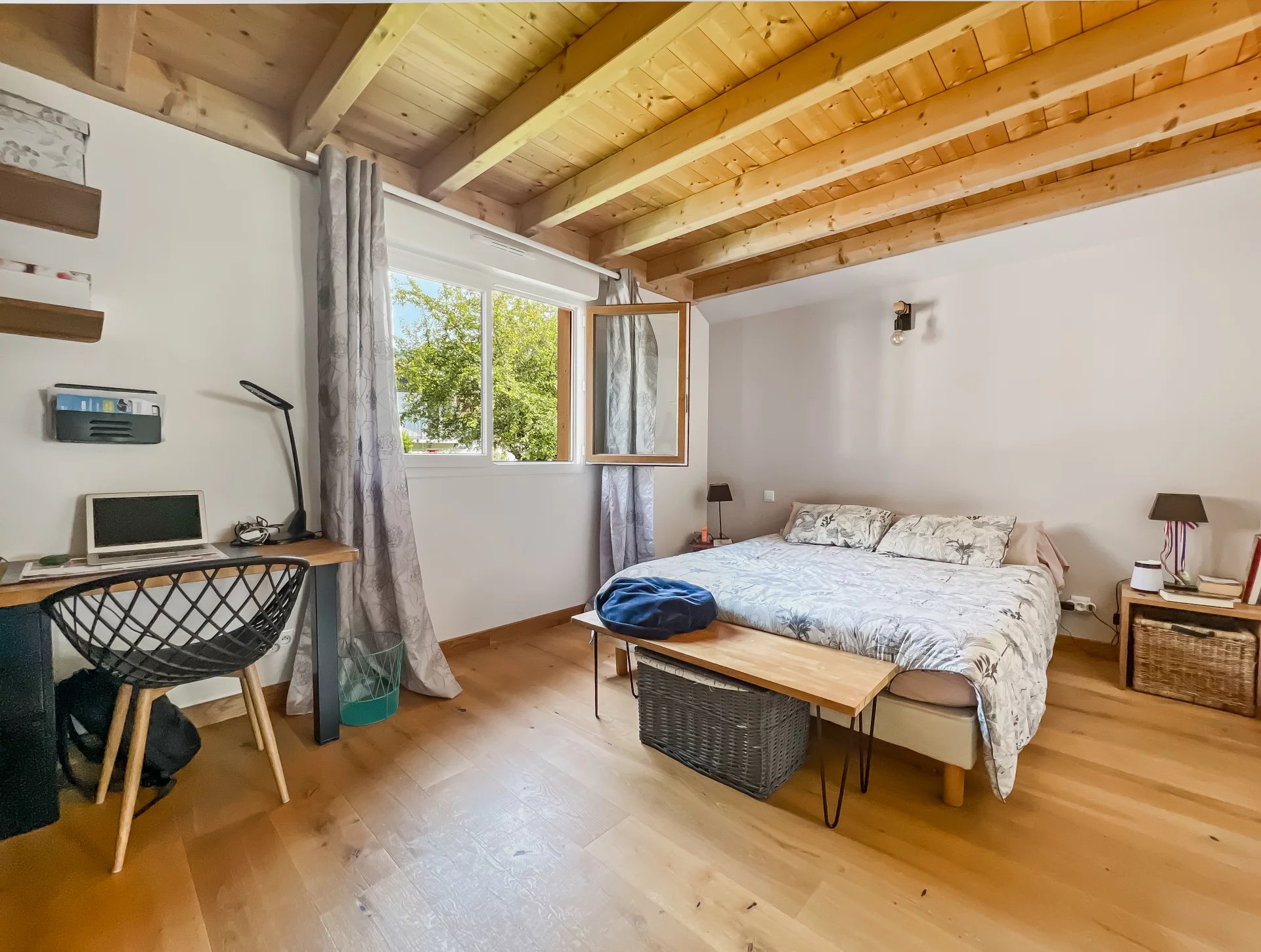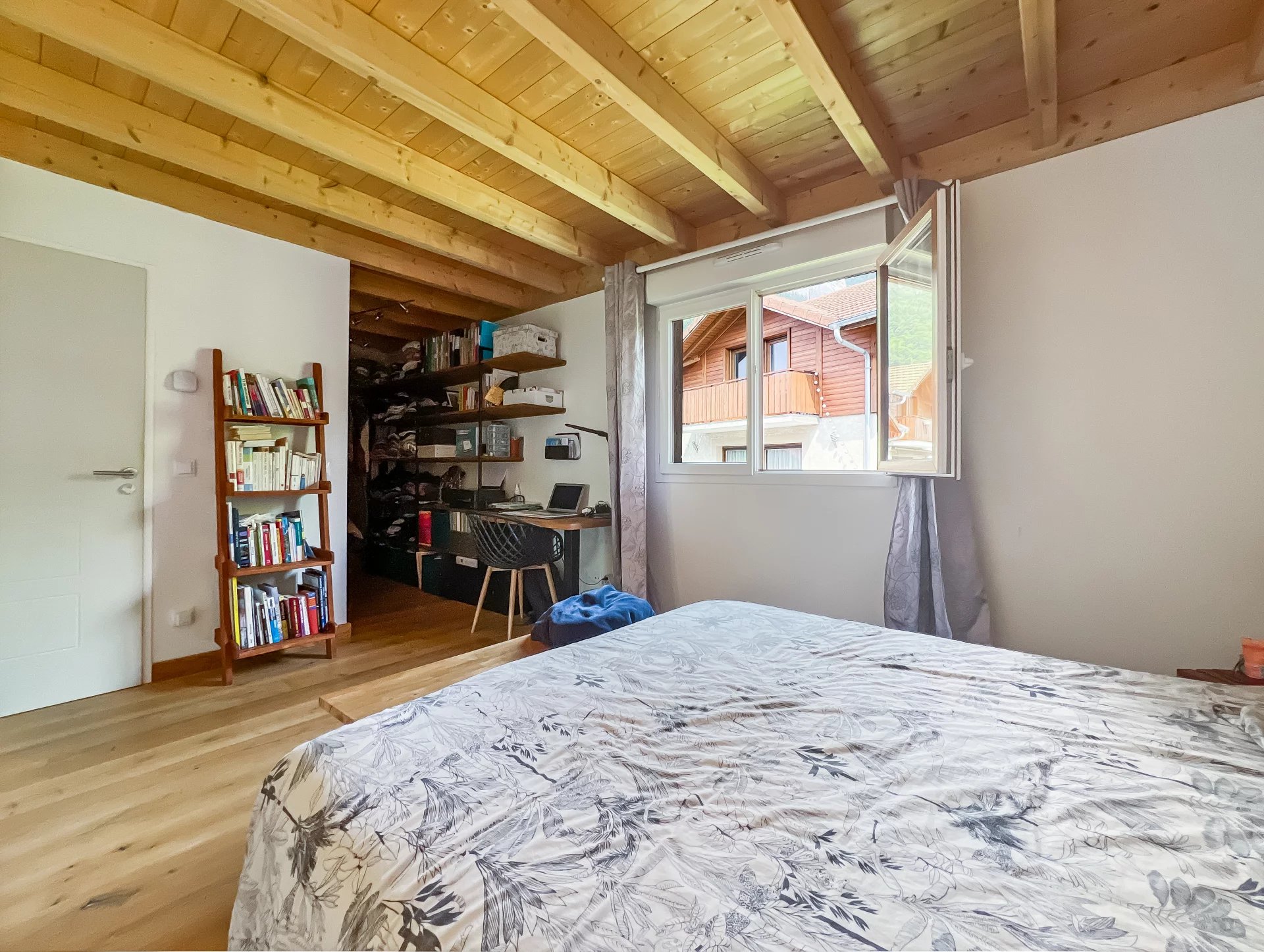 Cette maison en demi-niveaux offre de beaux volumes avec un séjour, salon et cuisine ouverte de 42 m², s'ouvrant sur une grande terrasse surélevée orientée ouest, bénéficiant d’une vue imprenable sur les montagnes.