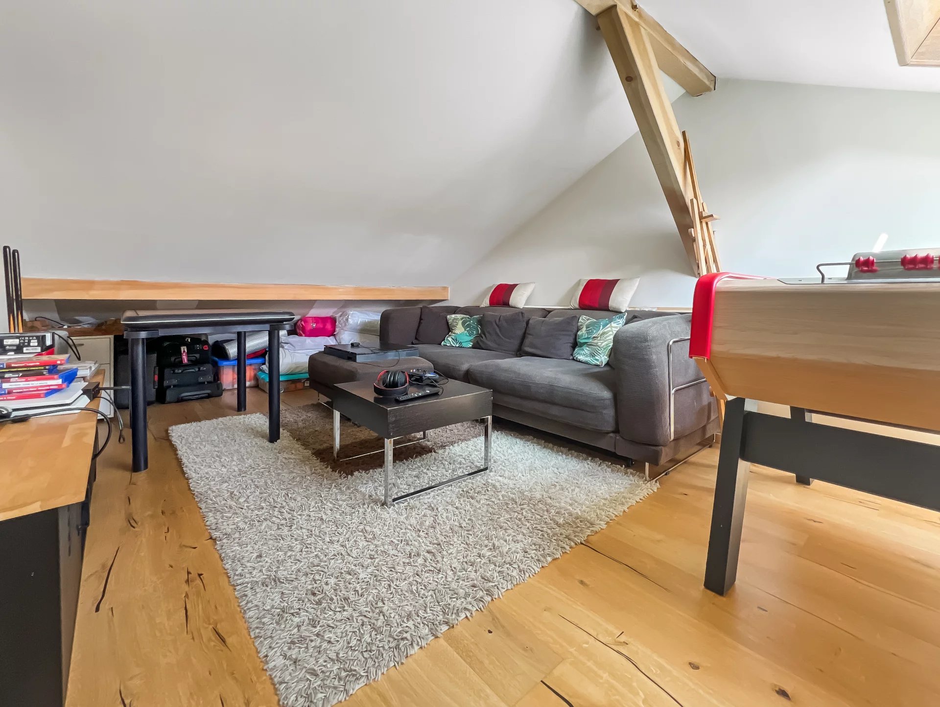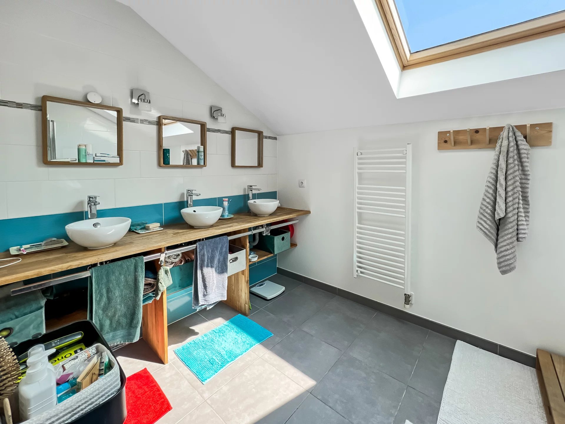 Un grand garage, une chaufferie ainsi qu’un vaste espace cave/débarras de 50 m² complètent ce bien.
