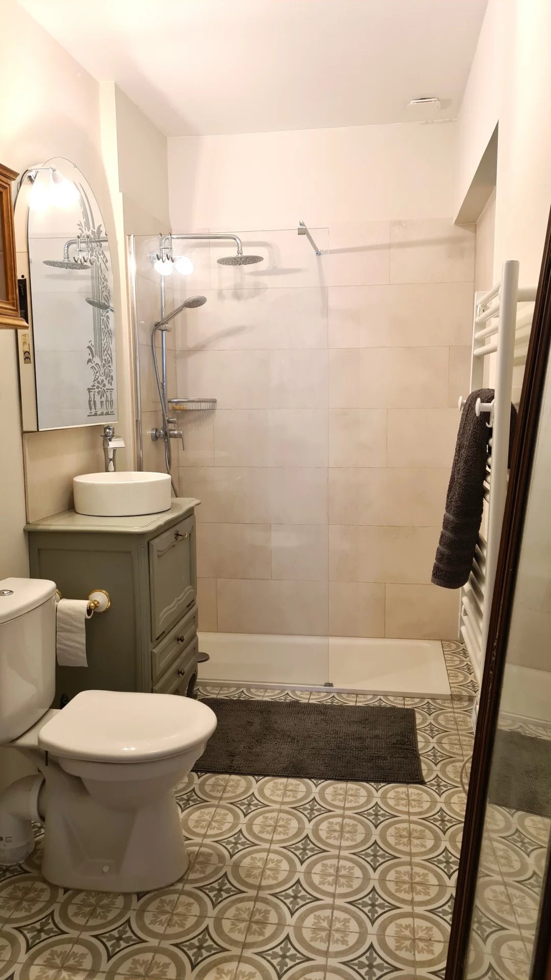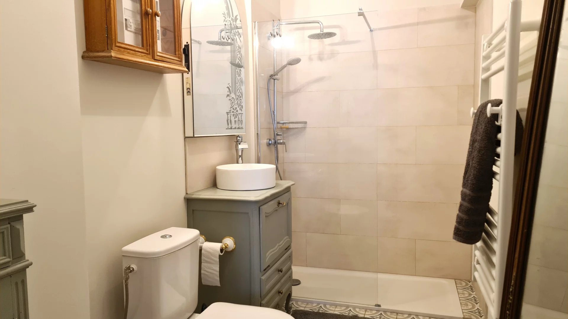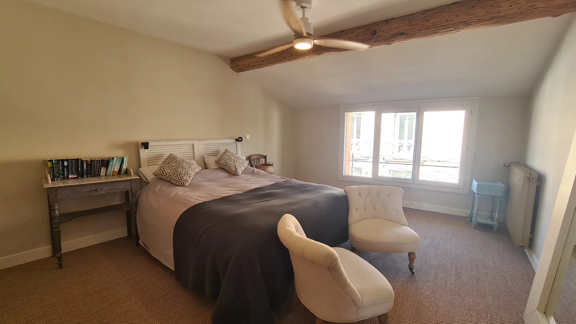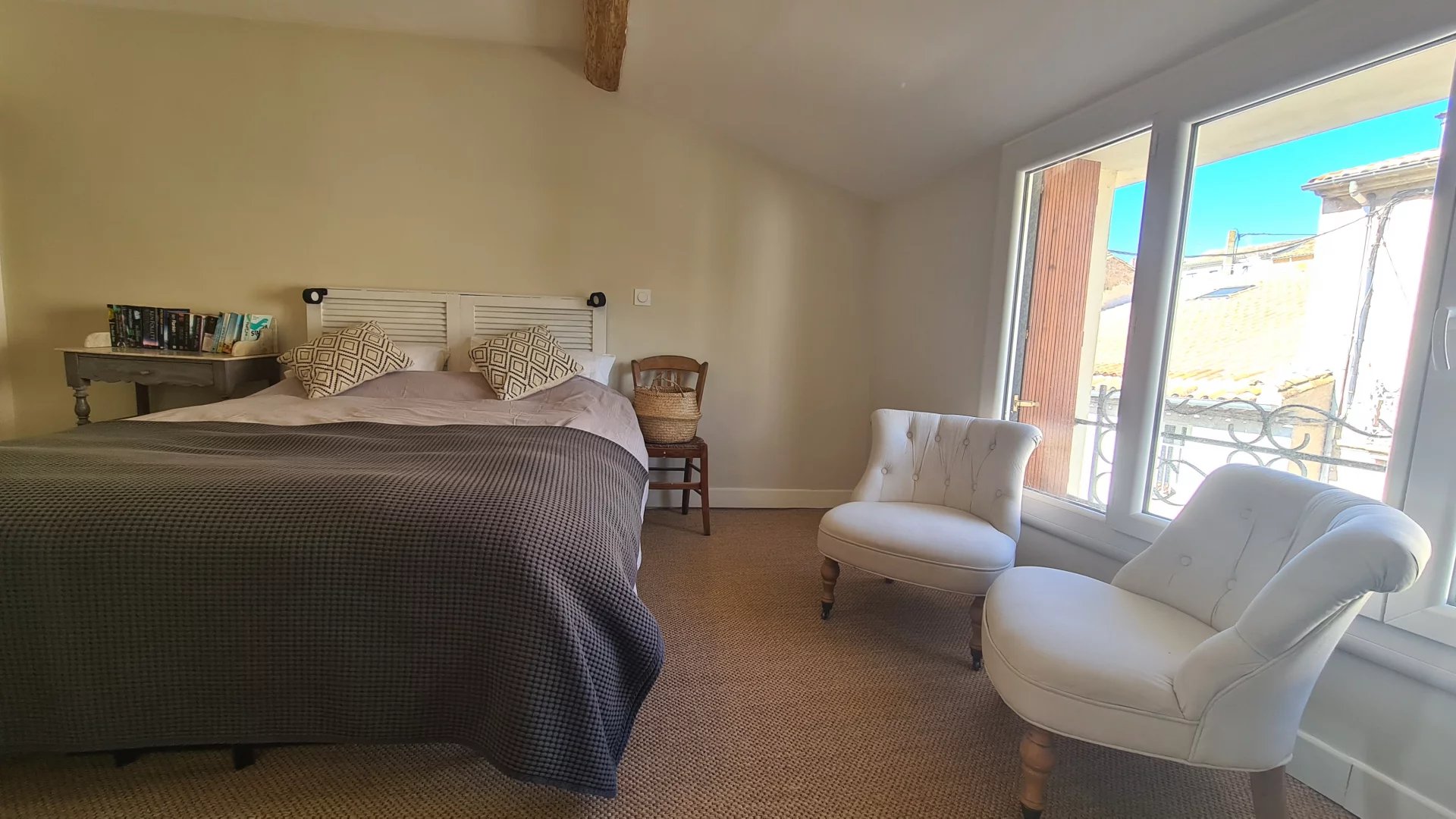 Le dernier étage offre quatre autres chambres, dont la suite parentale et une chambre avec salle d’eau et dressing secret. Les chambres exposées sud bénéficient de la climatisation pour un confort toute l’année.