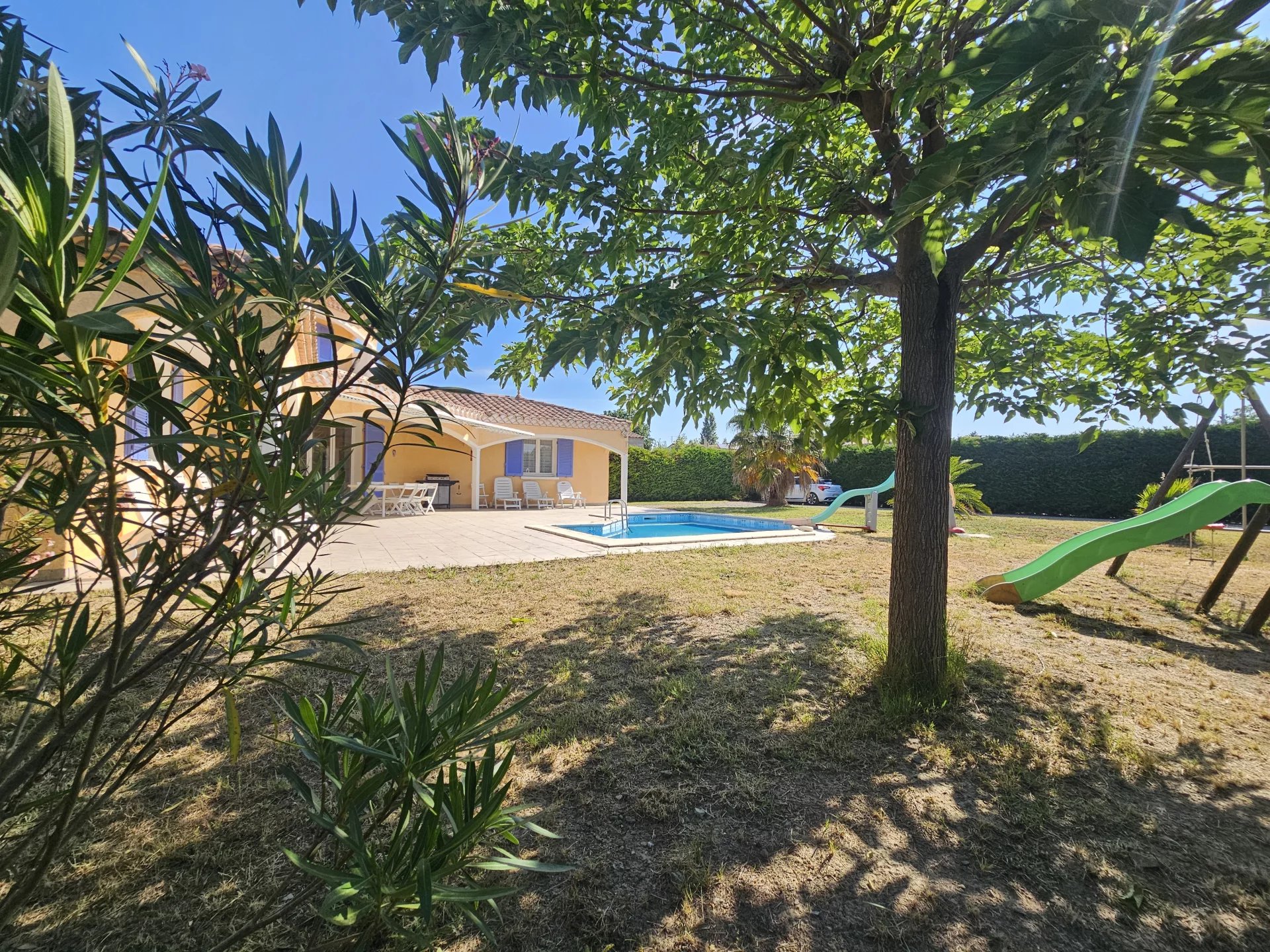 Située aux alentours du charmant village de Siran, dans l’Hérault, cette belle villa de 110 m² offre un cadre de vie paisible et ensoleillé, typique du Sud de la France. Construite en 2002 sur un terrain arboré d’environ 1 000 m², elle séduit par ses volumes, sa luminosité et ses prestations de qualité.