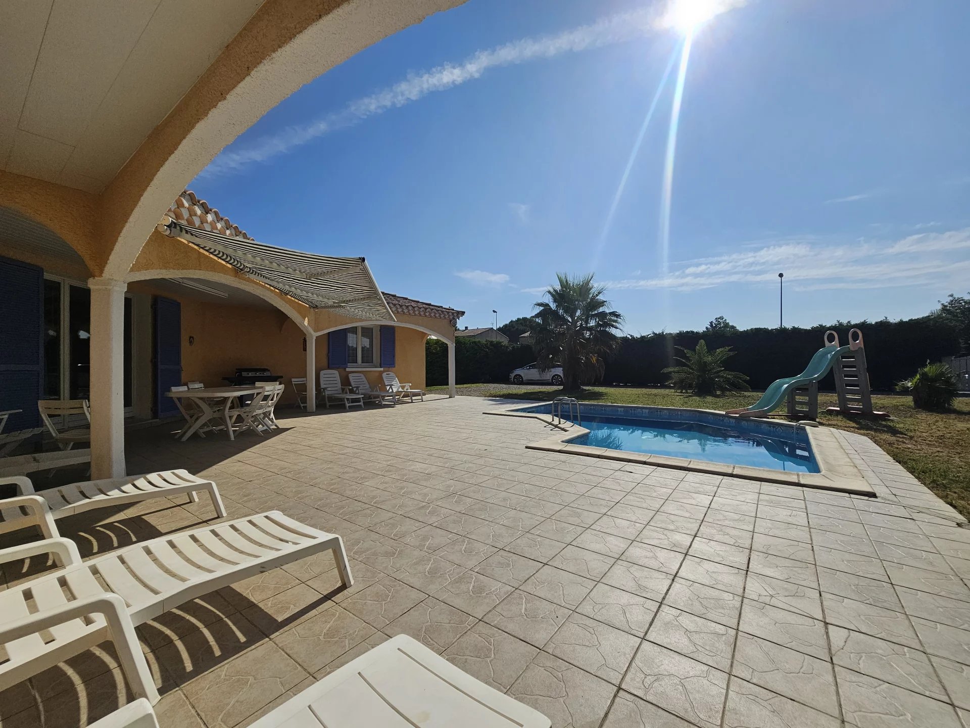 Profitez du grand salon lumineux avec accès direct à la terrasse et à la piscine, idéal pour recevoir famille et amis