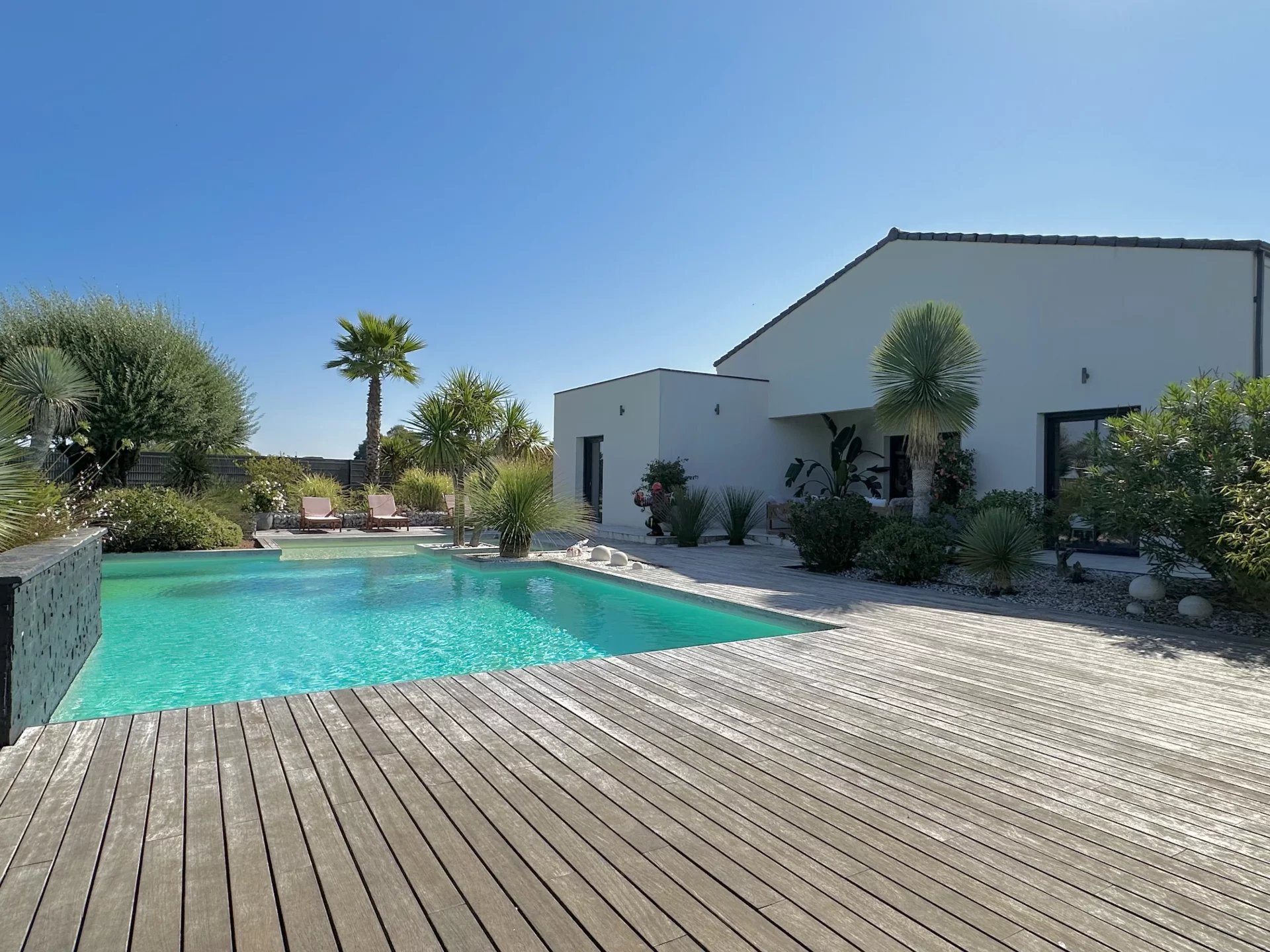Équipements : climatisation réversible, pompe à chaleur aérothermique, adoucisseur, domotique, fibre optique, forage avec système de filtration, portail électrique, éclairage extérieur. Une pièce attenante reste à aménager selon vos envies (salle de sport, espace bien-être, bureau indépendant).