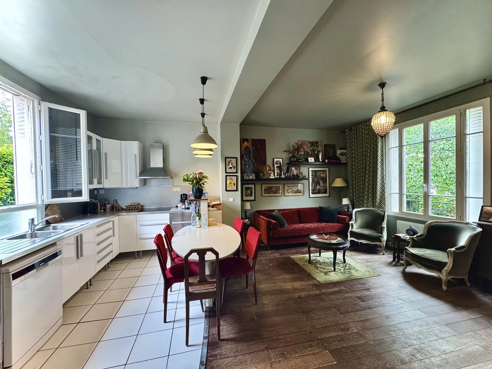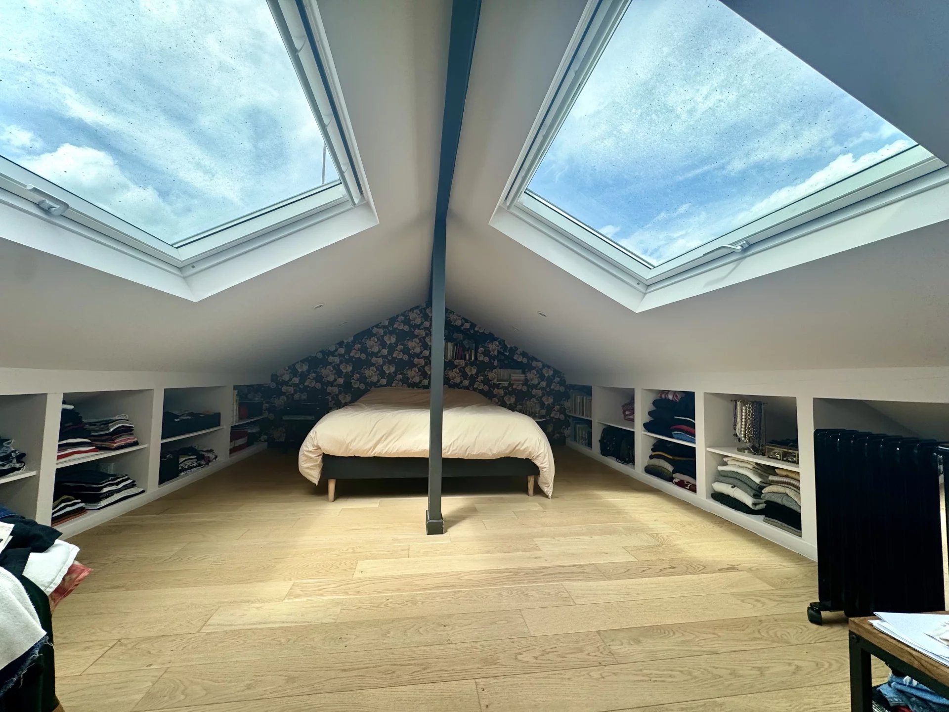 Répartie sur 4 niveaux, composée d'un séjour avec cuisine ouverte d'environ 30 m², de 4 chambres et d'une salle de bain avec WC, d'une salle d'eau et un second WC séparé.